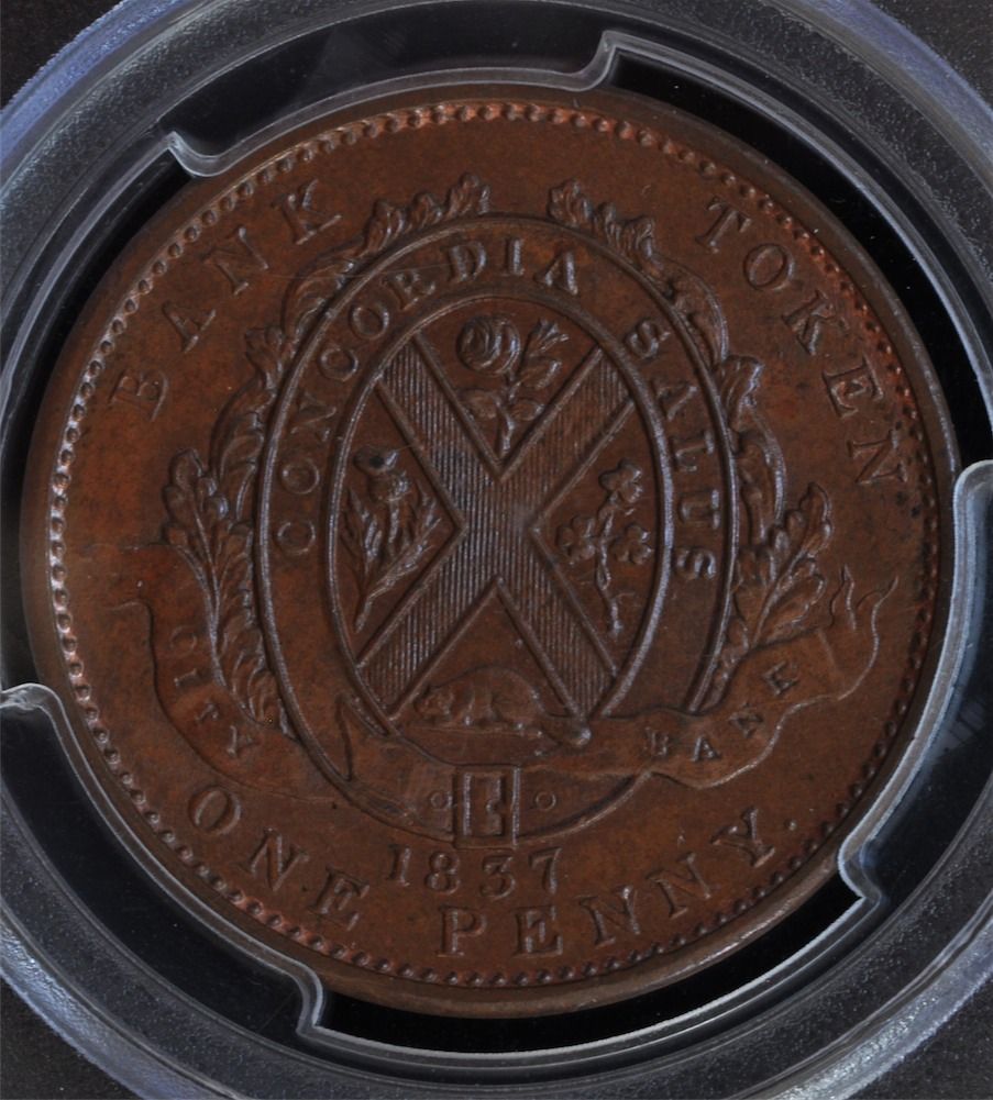 CH LC-9A1 - BR 521, 1837 Lower Canada Agriculture One Penny Token, PCGS MS64 BN. Ex:Temple.