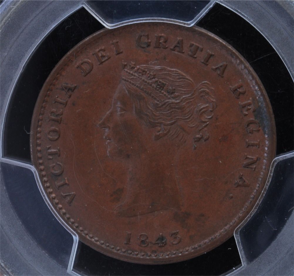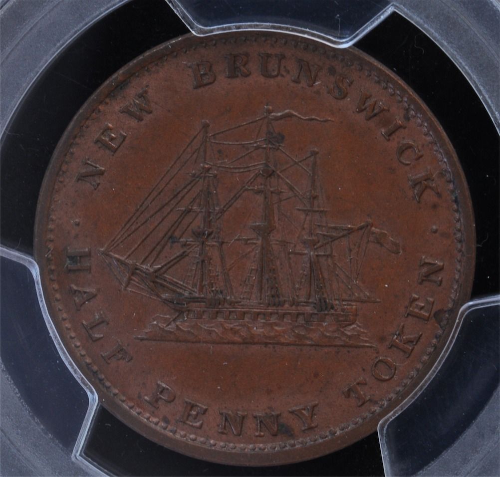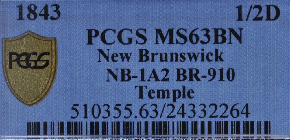 CH NB-1A2 - BR 910, 1843 New Brunswick Half Penny, PCGS MS63 BN. Ex:Temple.