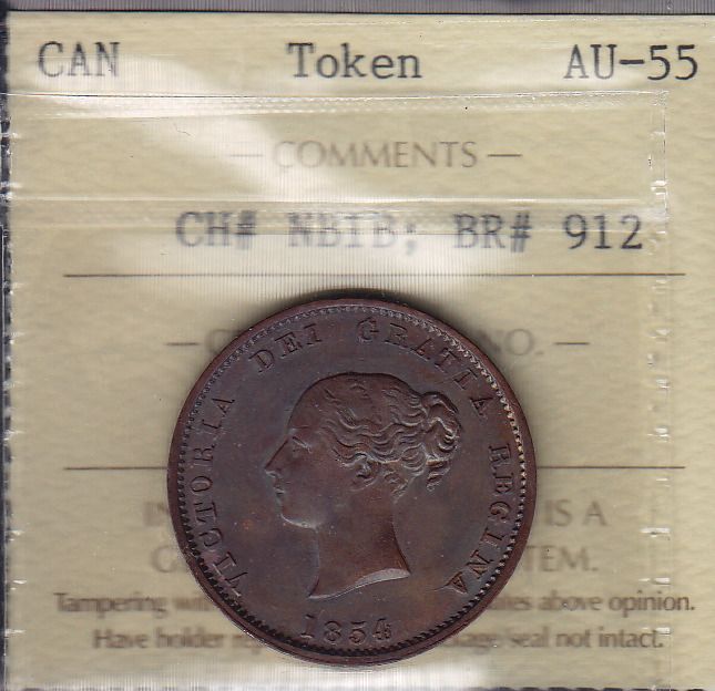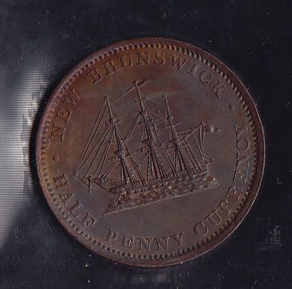CH NB-1B - BR 912, New Brunswick Half Penny Currency, ICCS AU-55.