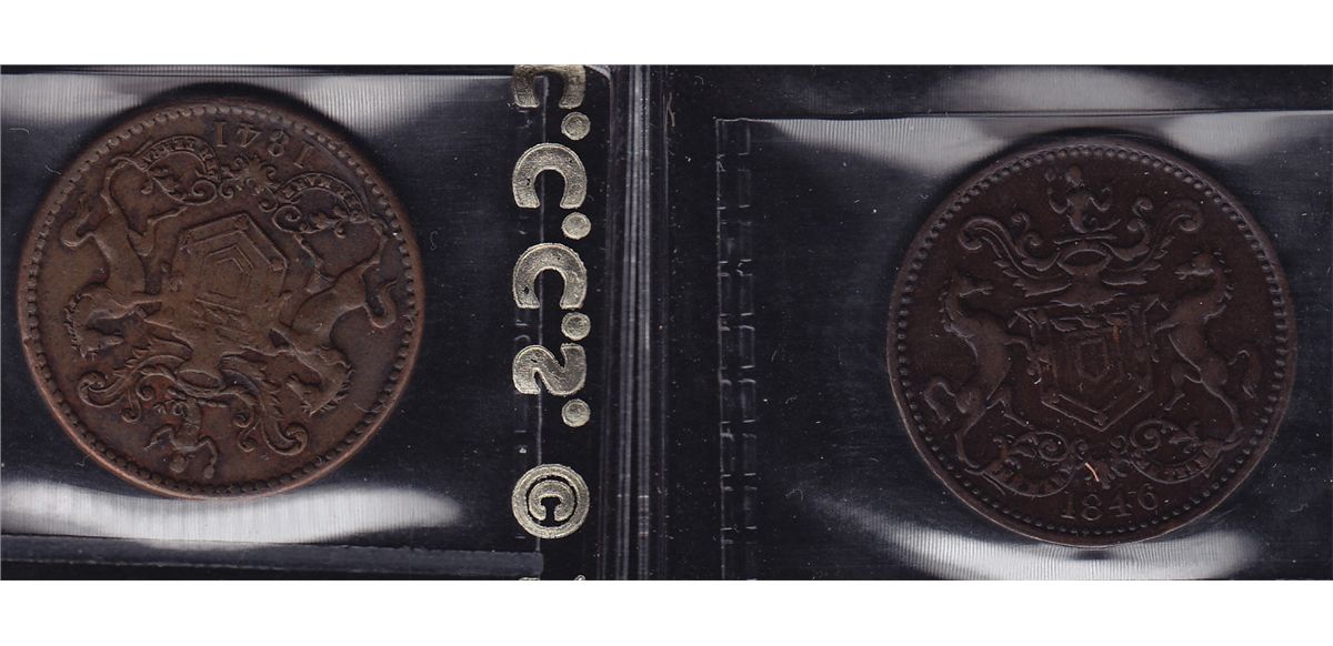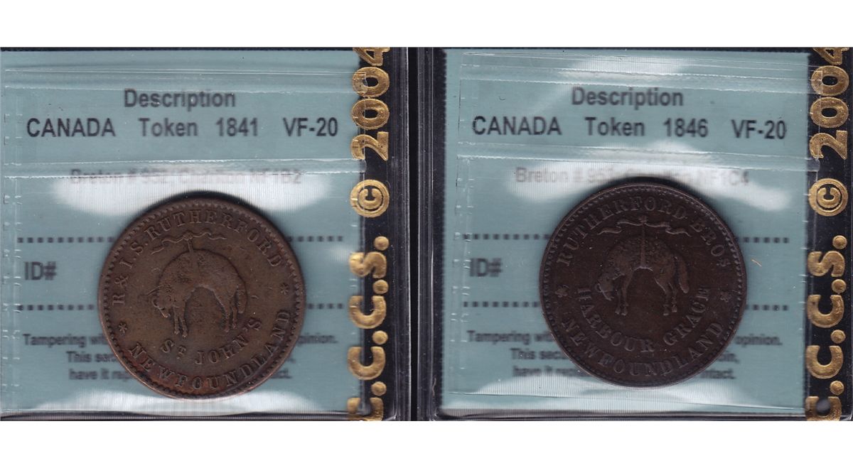 CH NF-1B2 & NF-1C4 - Lot of Two Rutherford Tokens - CH NF-1B2, BR 952 CCCS VF-20 & CH NF-1C4, BR 953 CCCS VF-20.