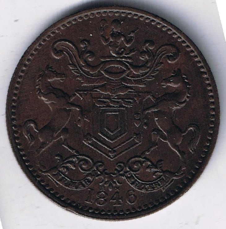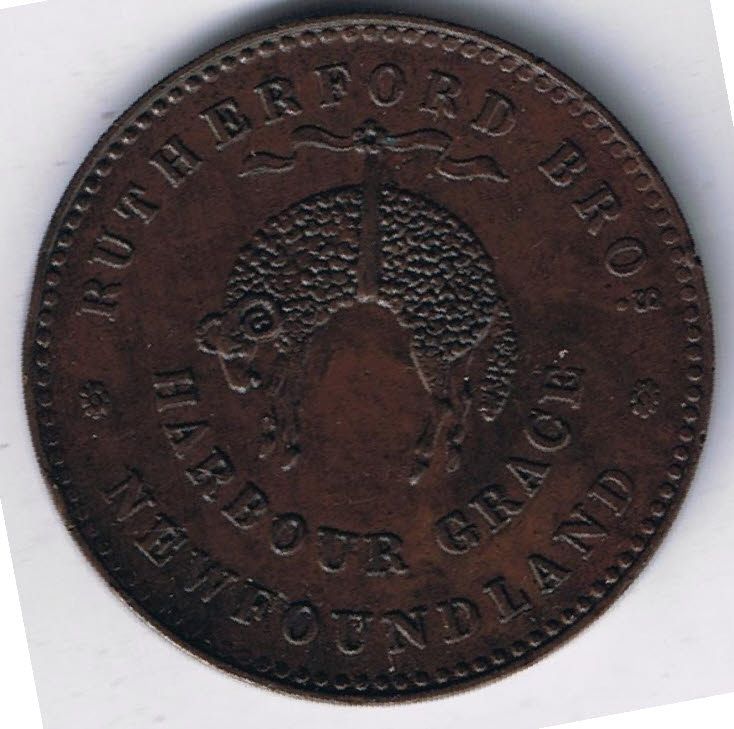 CH-NF-1C2. BR 953, 1846, Rutherford, Harbour Grace, Newfoundland. Coarse Wool, Rosettes, Medal alignment. AU. Courteau 7.