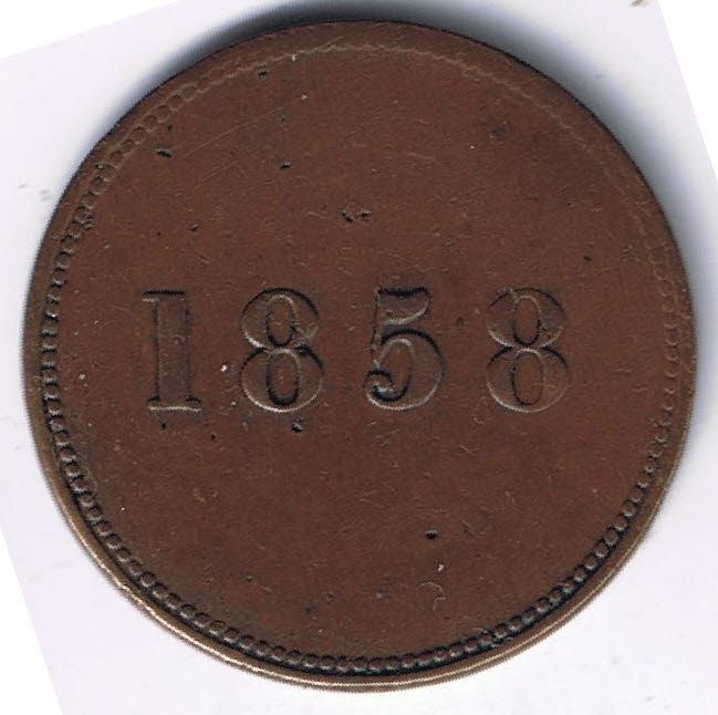 CH-NF-3A1. BR 954, 1858 Sailing Ship. Open "5", lighter than catalog suggests 4.251g. VF. Courteau 9.