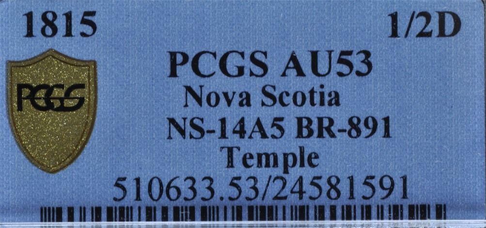 CH NS-14A5 - BR 891, 1815 Nova Scotia Half Penny Token, PCGS AU53. Ex:Temple.