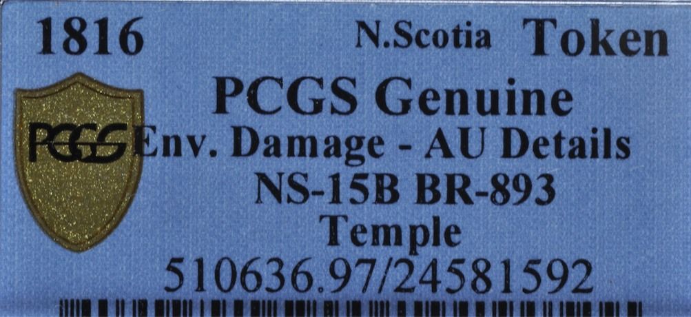 CH NS-15B - BR 893, 1815 Nova Scotia Half Penny Token, PCGS AU Details. Ex:Temple.