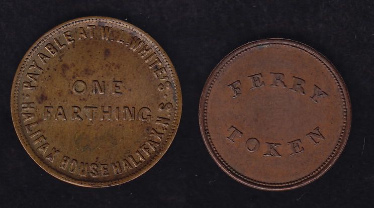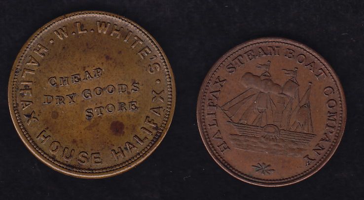 CH NS-17A1 Lot of Two Nova Scotia Tokens - Lot of Two Nova Scotia Tokens - Nova Scotia W L White, NS-17A1, BR 899, VF; Nova Scotia Halifax Steamboat Co., BR 900, AU.