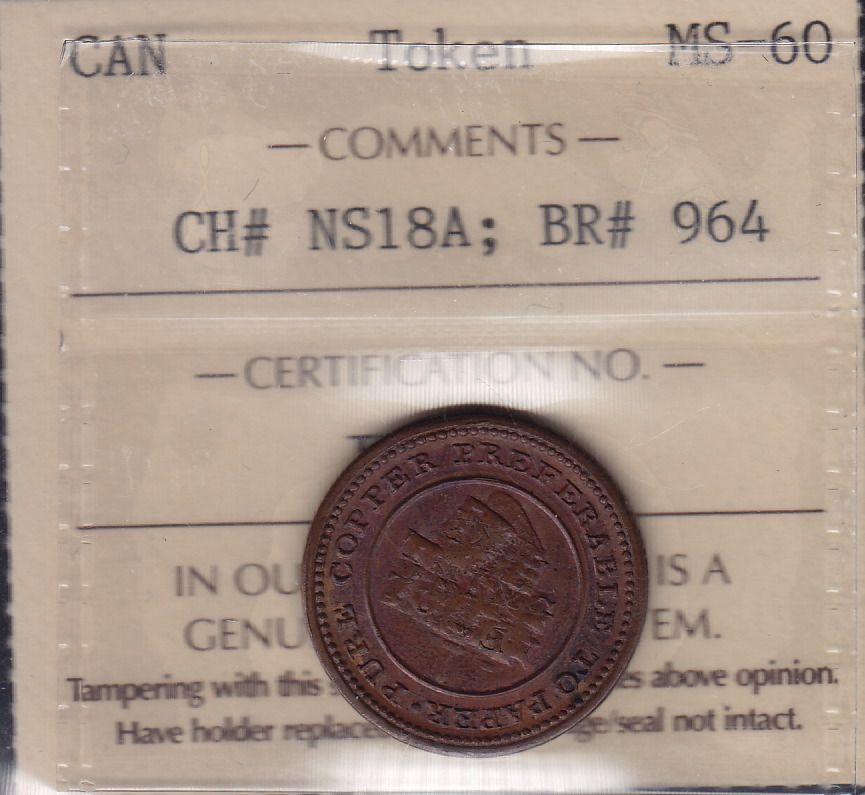 CH NS-18A. BR 964, ICCS MS-60, Haliburton farthing uncommon in Unc.