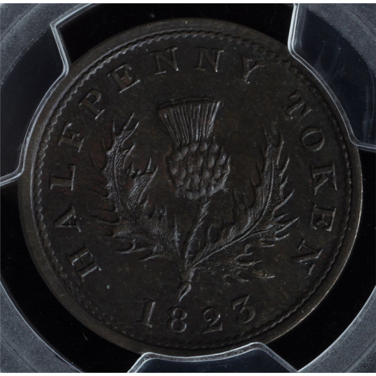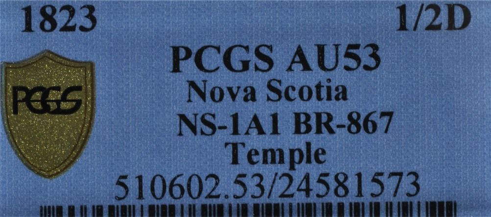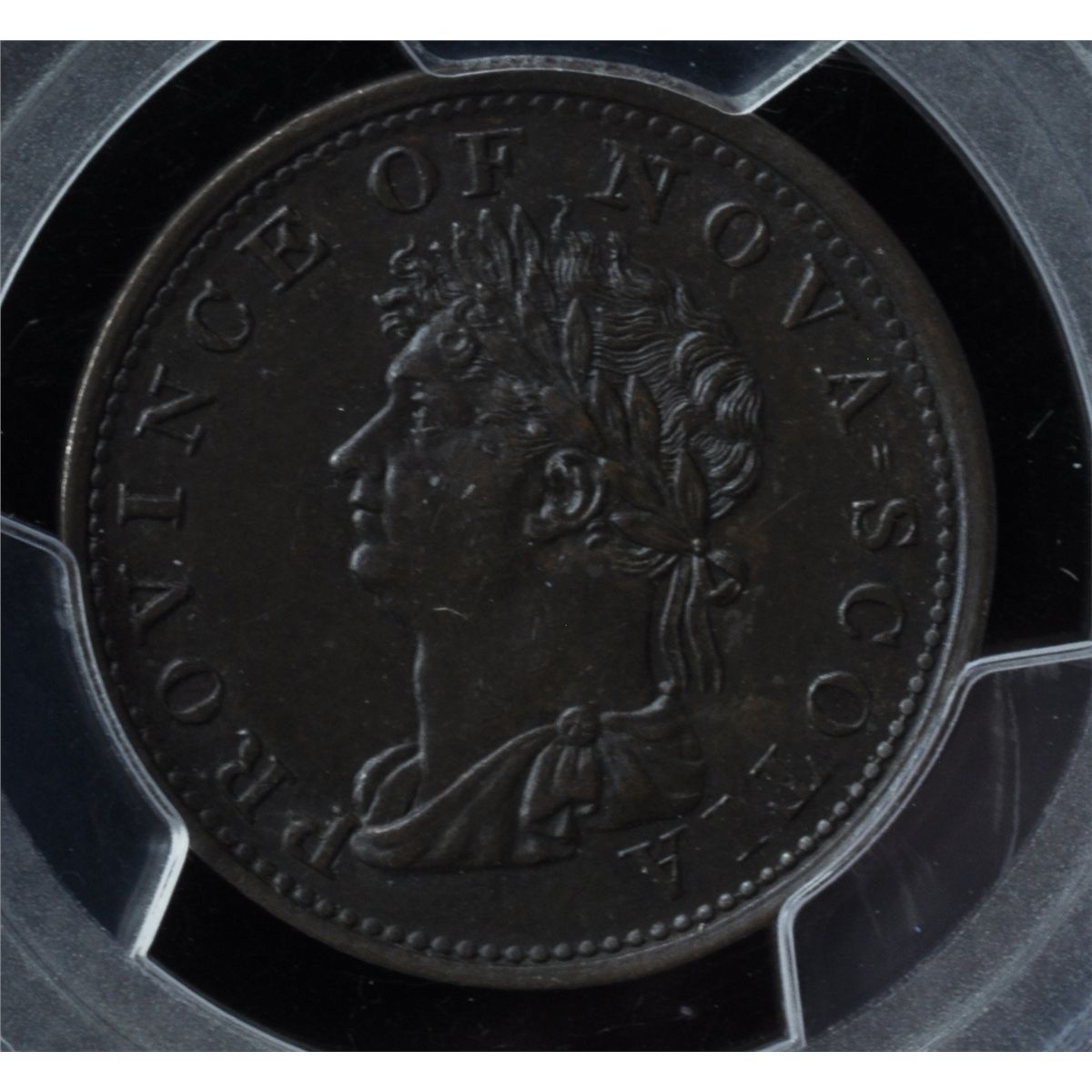 CH NS-1A1 - BR 867, 1823 Nova Scotia Half Penny Token, PCGS AU53. Ex:Temple.