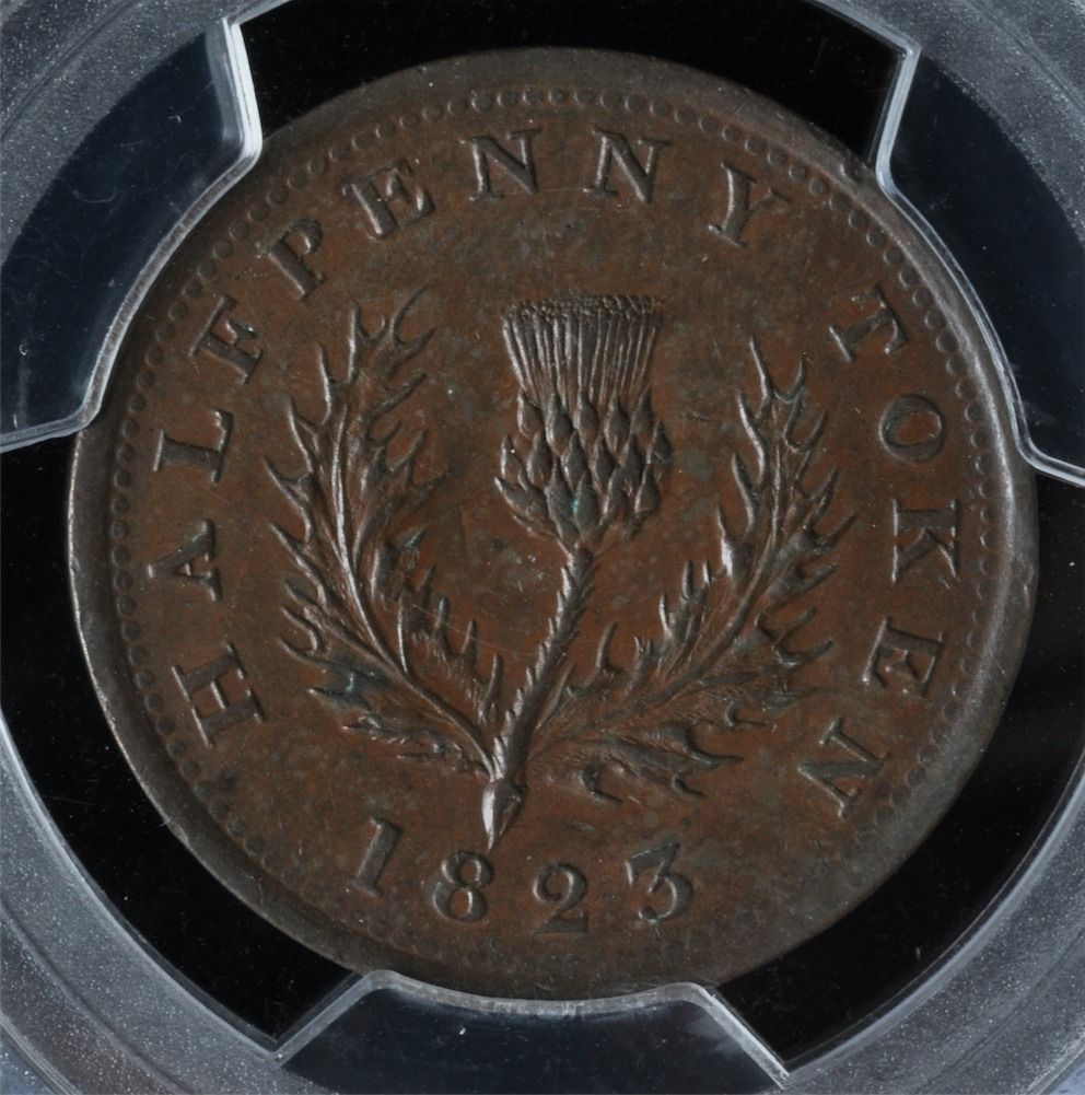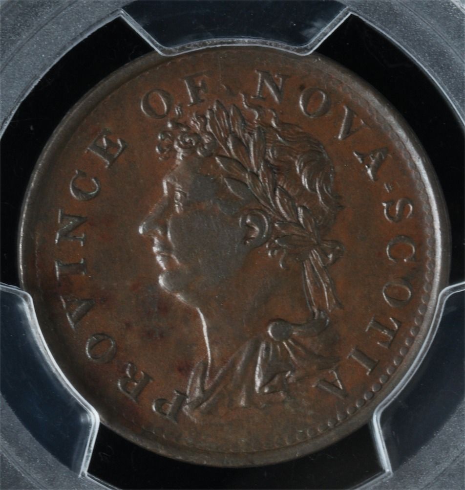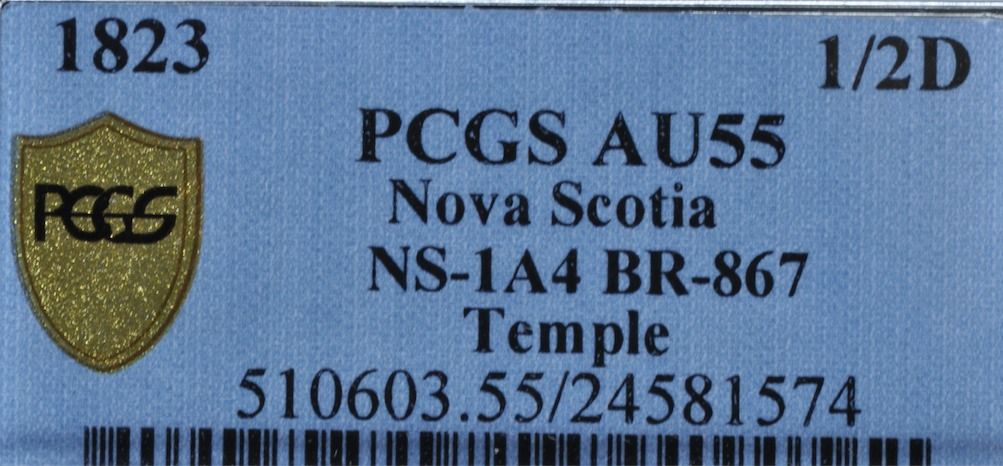 CH NS-1A4 - BR 867, 1823 Nova Scotia Half Penny Token, PCGS AU55. Ex:Temple.