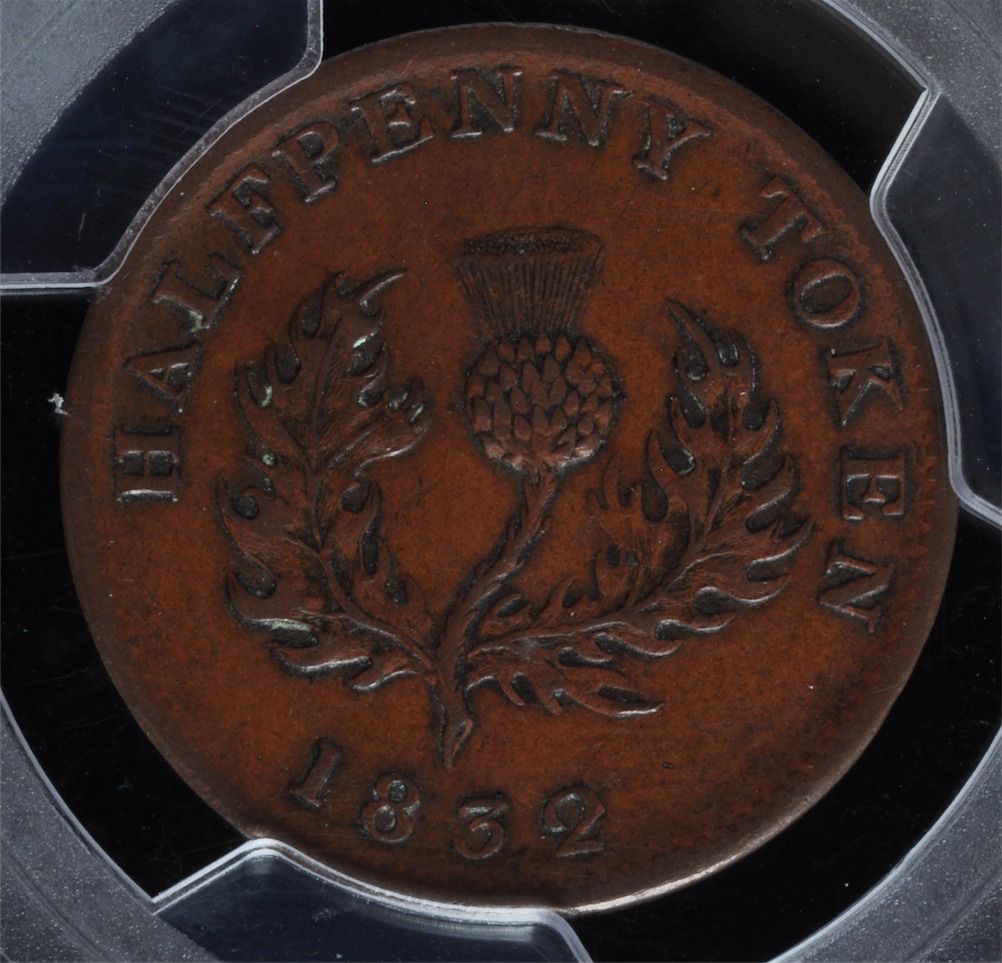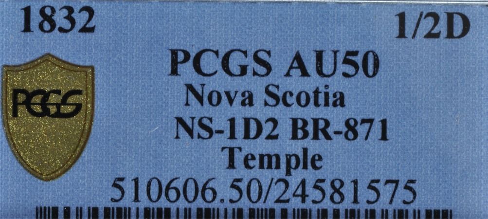 CH NS-1D2 - BR 871, 1832 Nova Scotia Half Penny Token, PCGS AU50. Ex:Temple.