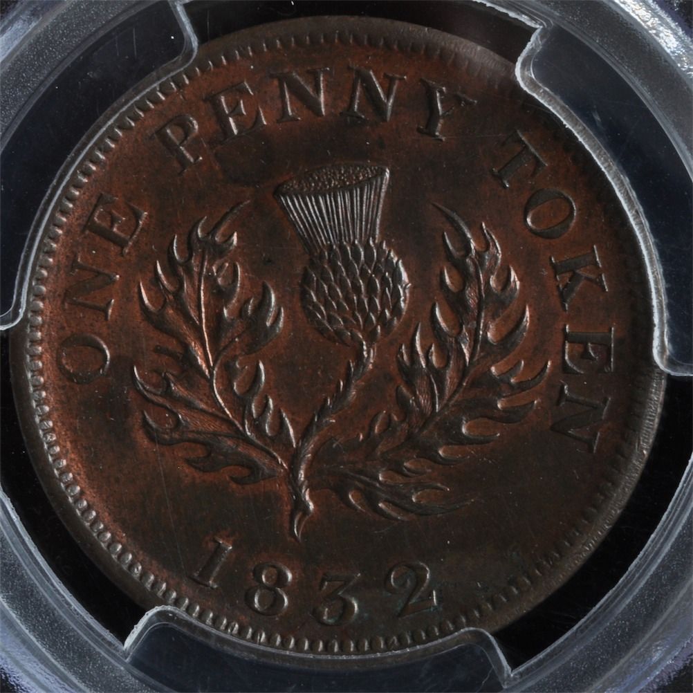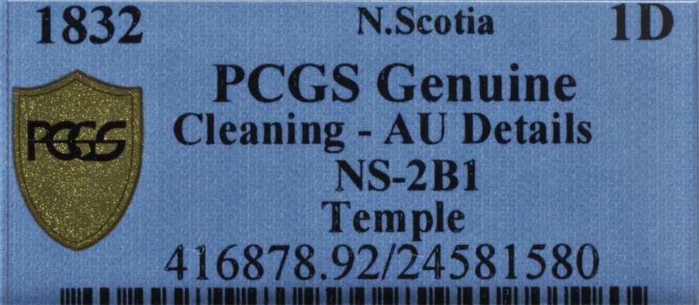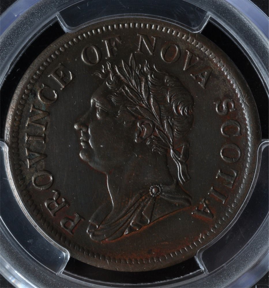 CH NS-2B1 - 1832 Nova Scotia One Penny Token, PCGS AU details, cleaned. Ex:Temple.