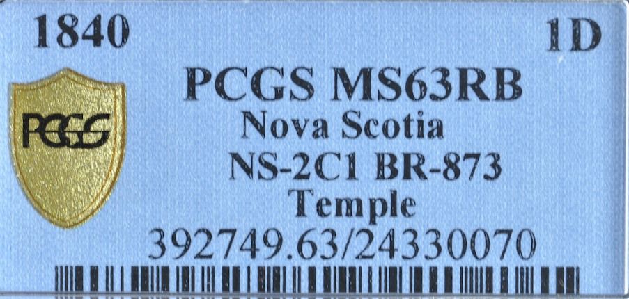 CH NS-2C1. BR 873, 1840 One Penny, PCGS MS63, Ex:Temple.