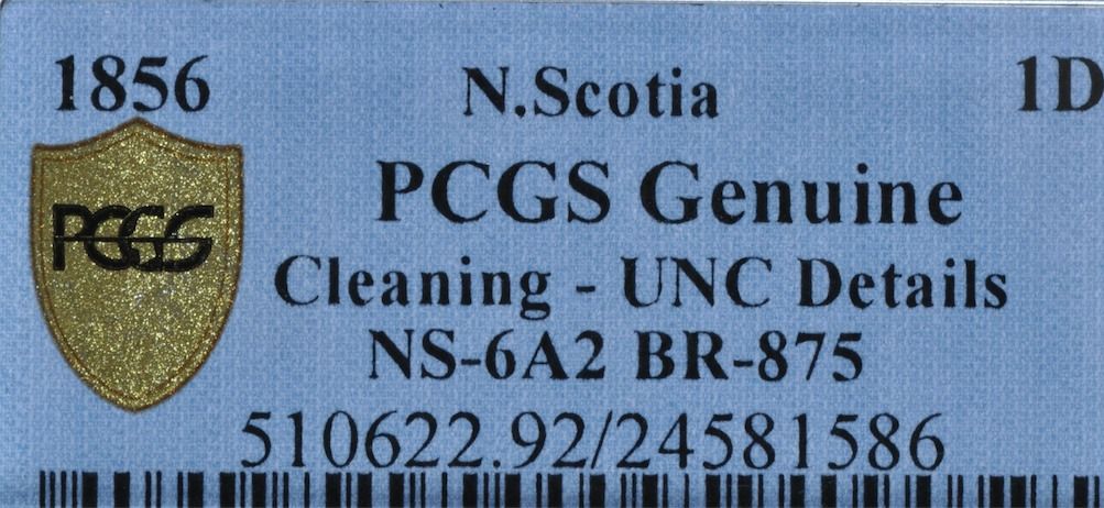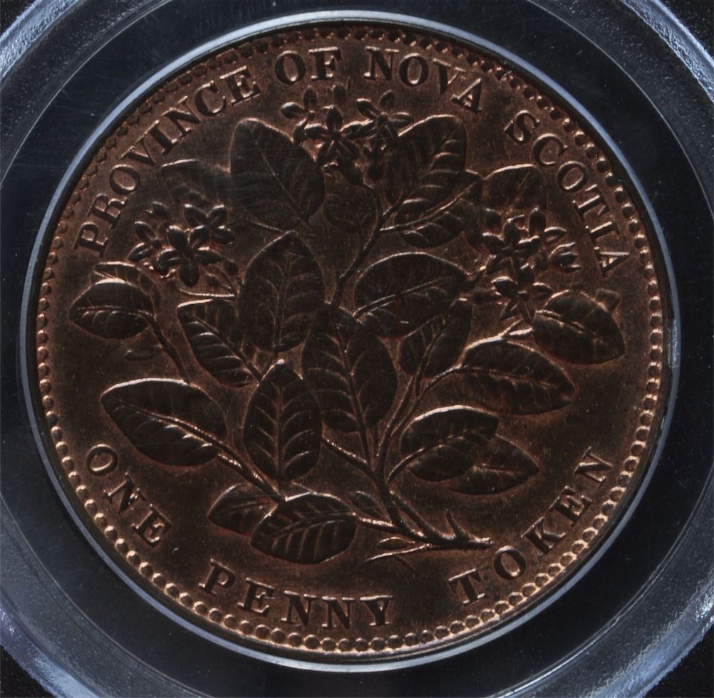 CH NS-6A2 - BR 875, 1856 Nova Scotia One Penny Token, PCGS UNC details. Ex:Temple.