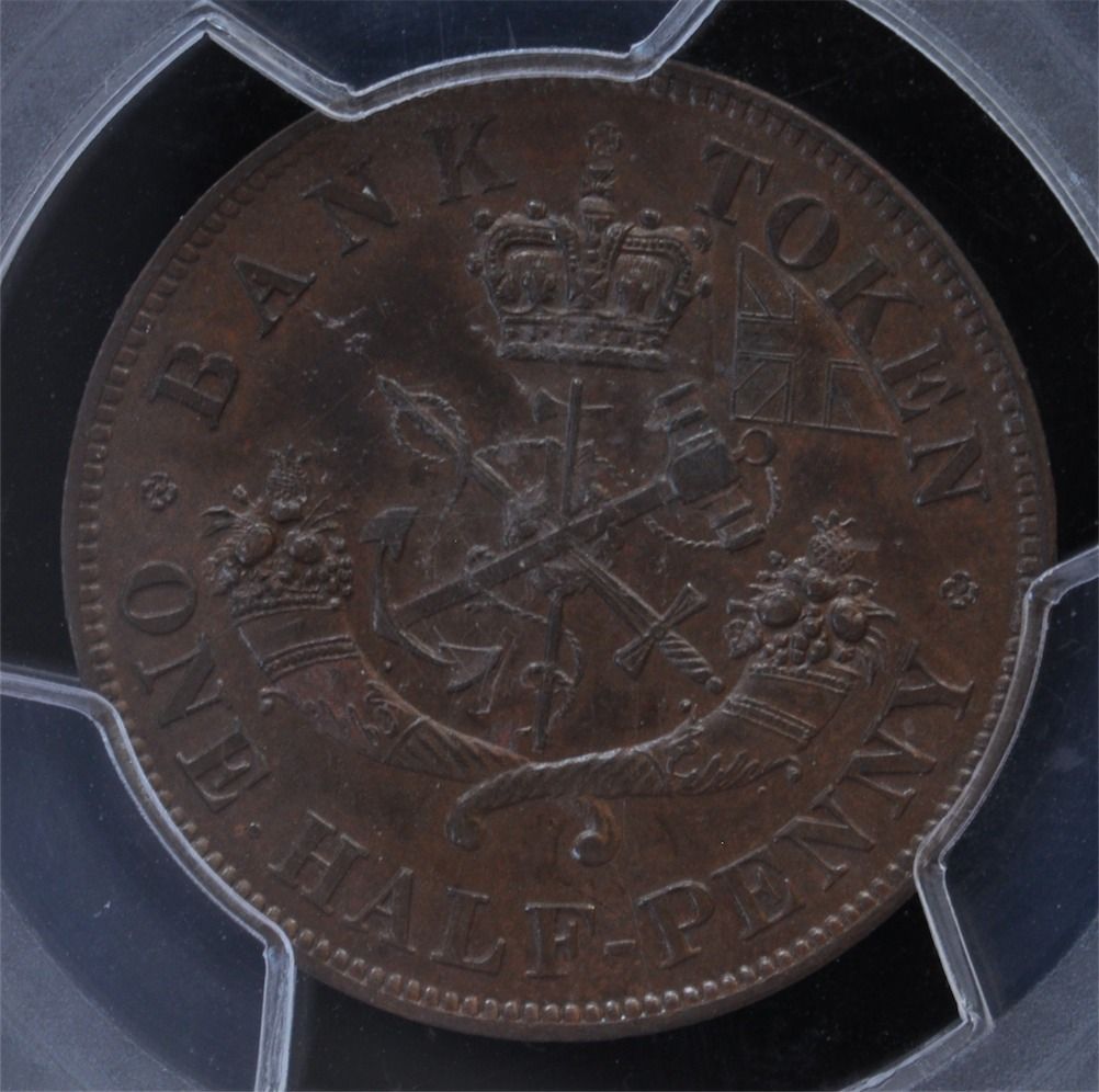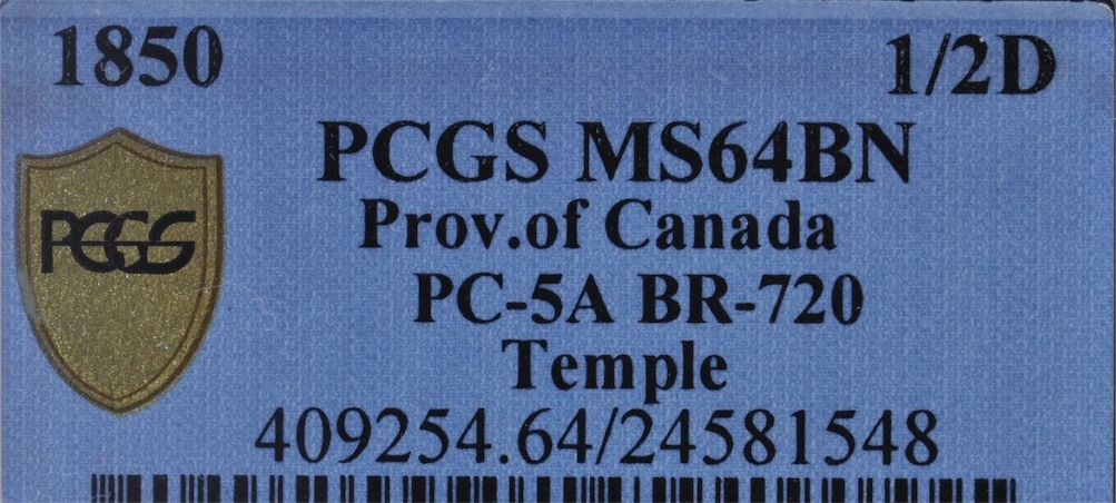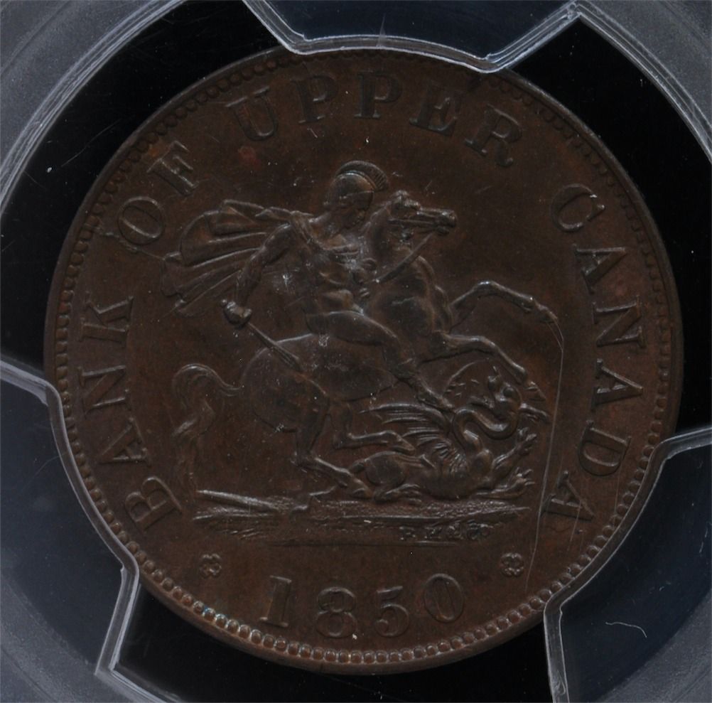 CH PC-5A - BR 720, 1850 Upper Canada Half Penny Token, PCGS MS64 BN. Ex:Temple.