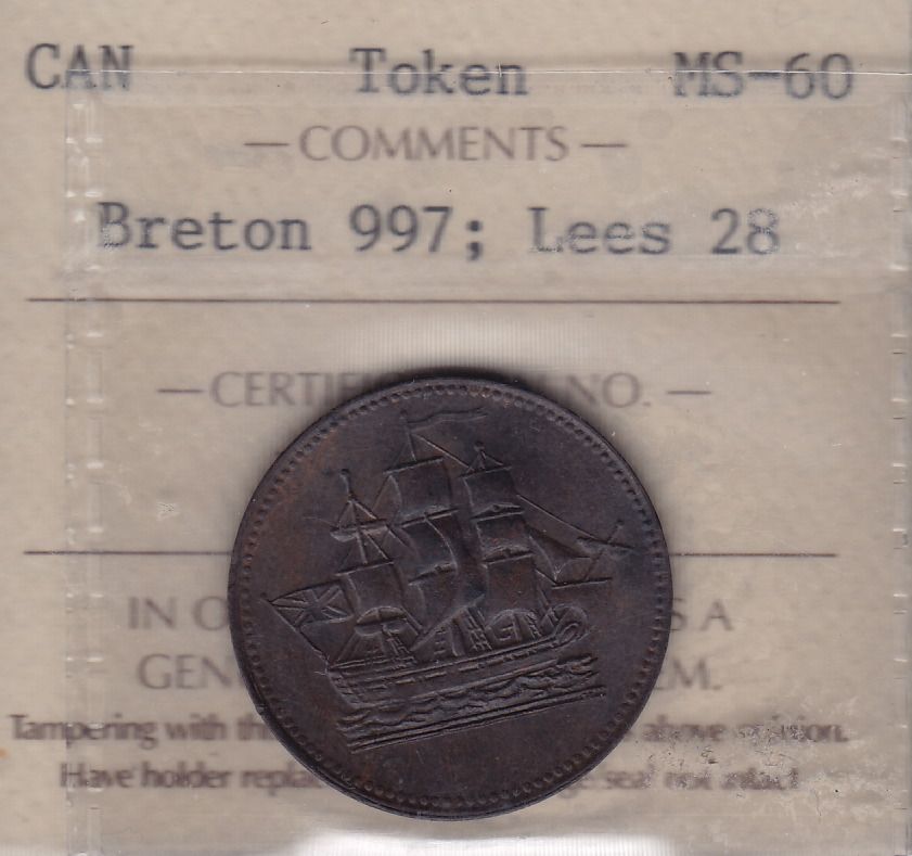CH PE-10-28 - BR 997; Lees 28, Ships Colonies and Commerce Token ICCS MS-60.