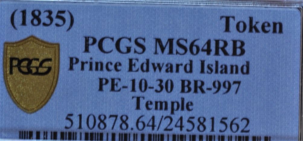 CH PE-10-30 - BR 997, 1835 Ships Colonies and Commerce PEI Token, PCGS MS64 RB. Ex:Temple.
