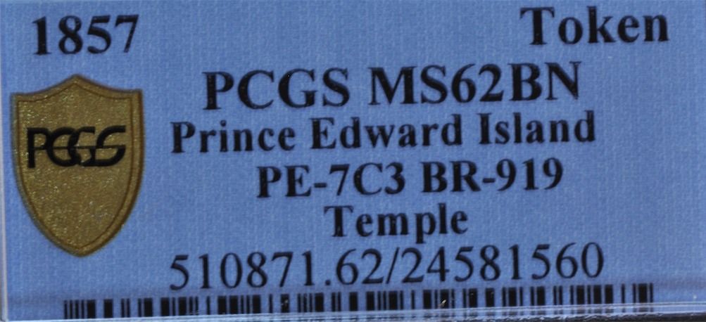 CH PE-7C3 - BR 919, 1857 Self Government and Free Trade PEI Token, PCGS MS62 BN. Ex:Temple.