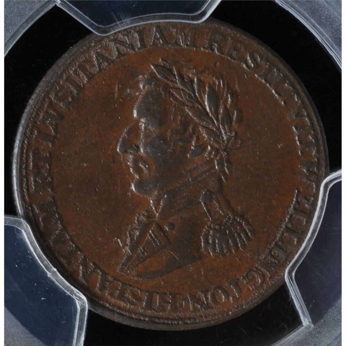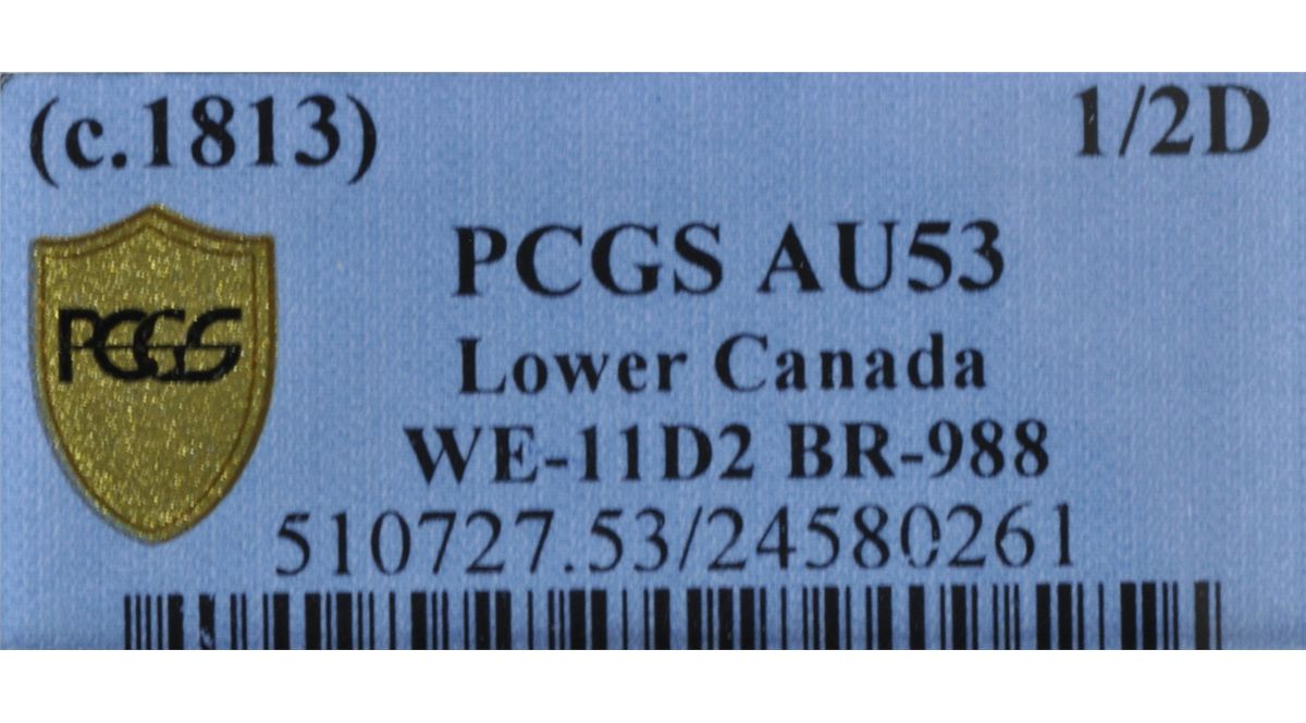 CH WE-11D2 - BR 988, Wellington Lower Canada Half Penny Token (c.1813), PCGS AU53. Ex:Temple.