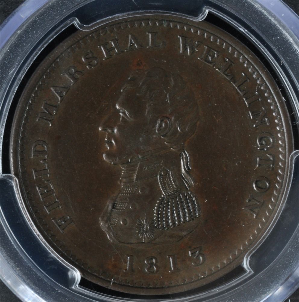CH WE-3 - BR 974, 1813 Wellington Lower Canada One Penny Token, PCGS AU50. Ex:Temple.