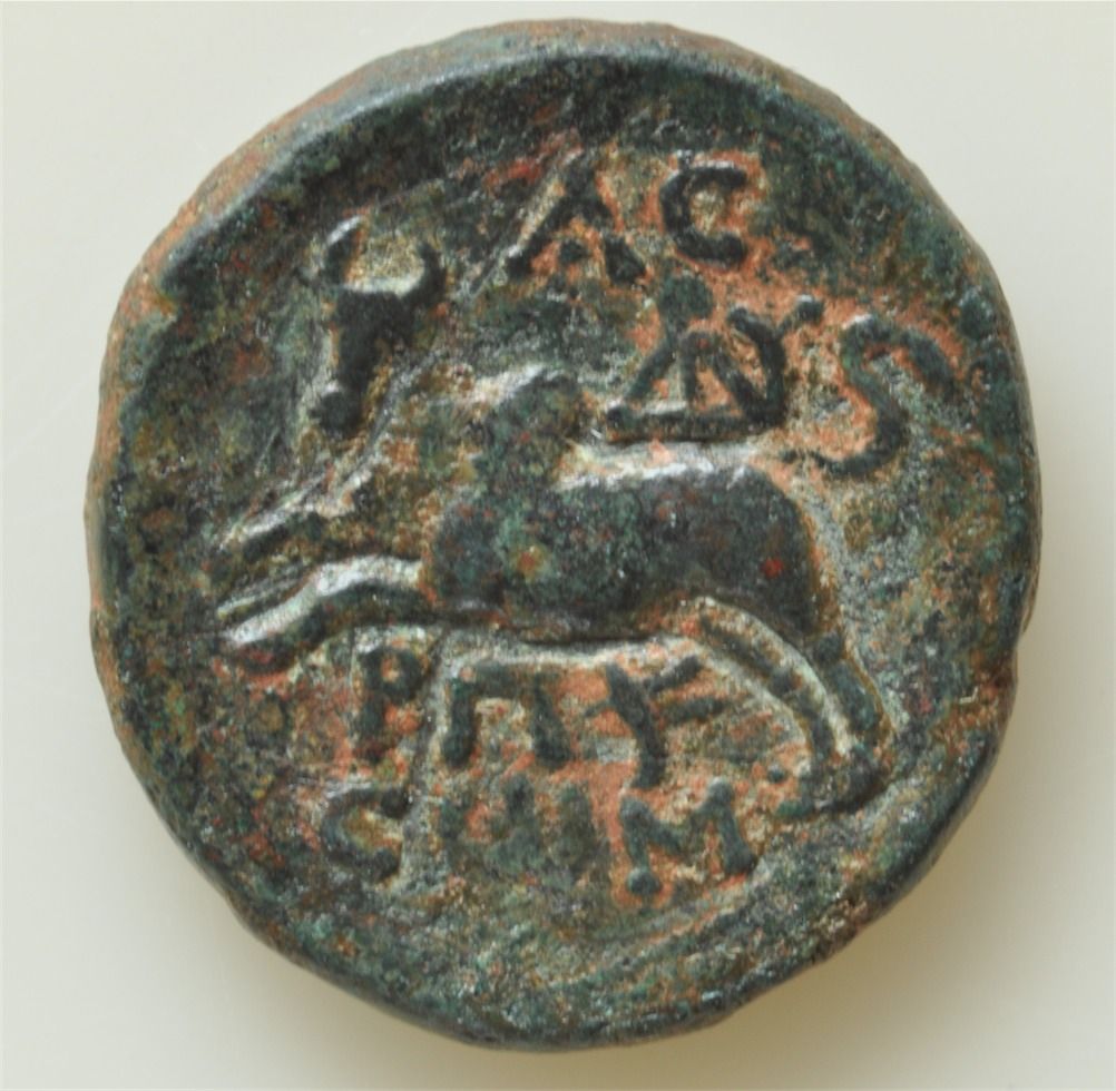 Caligula (37-41 AD) - AE-19 Sidon Obv: Veiled head of Caligula Rev: Europa facing on bull l., A C above. RPC 4612. VF.