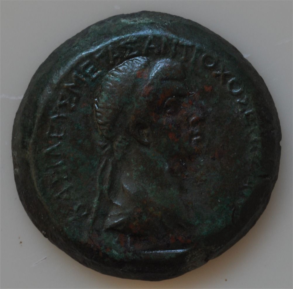 Caligula with Antiochus IV (38-72 AD) - AE-26 Anemurium (Cilicia) Obv: Diad. hd. r., with surrounding Greek legend. Rev: Artemis stg. r, drawing arrow from quiver, bow in r. hand. Greek legend on left and right fields monogram or date letters L IB lower right field, surrounded by dots. 13.9 grams This is a classic design and very well struck. S-5512 Var. VF.