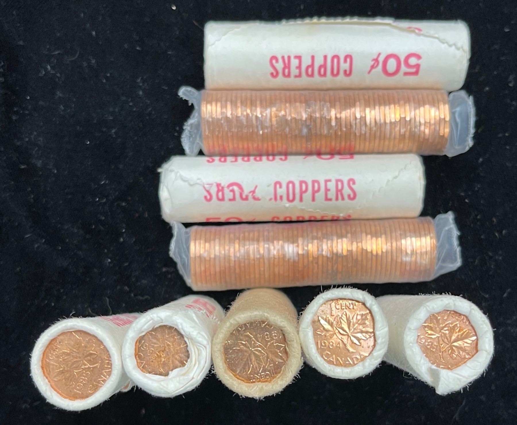 Mint Bank Rolls. 1984 (2), 1985 (6), unknown (1)