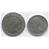 1981 1-cent and 25-cent struck on Australian copper-nickel 5 cent planchets. Both coins are circulated, but Canada only minted coins for Australia in 1981, and thus are quite scarce. Patrick Glassford Collection.