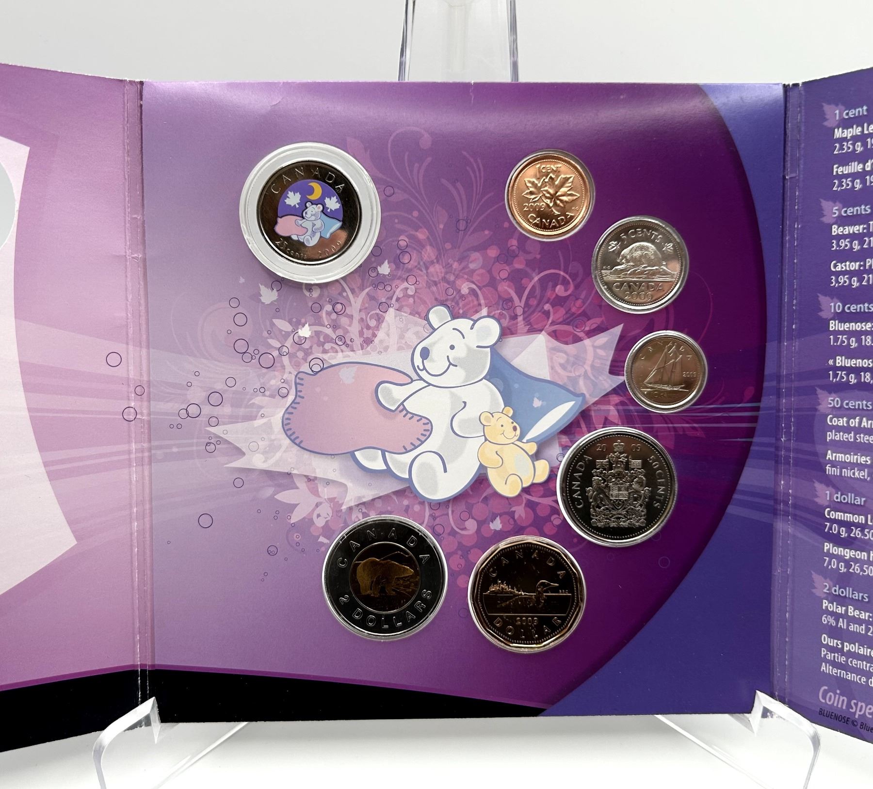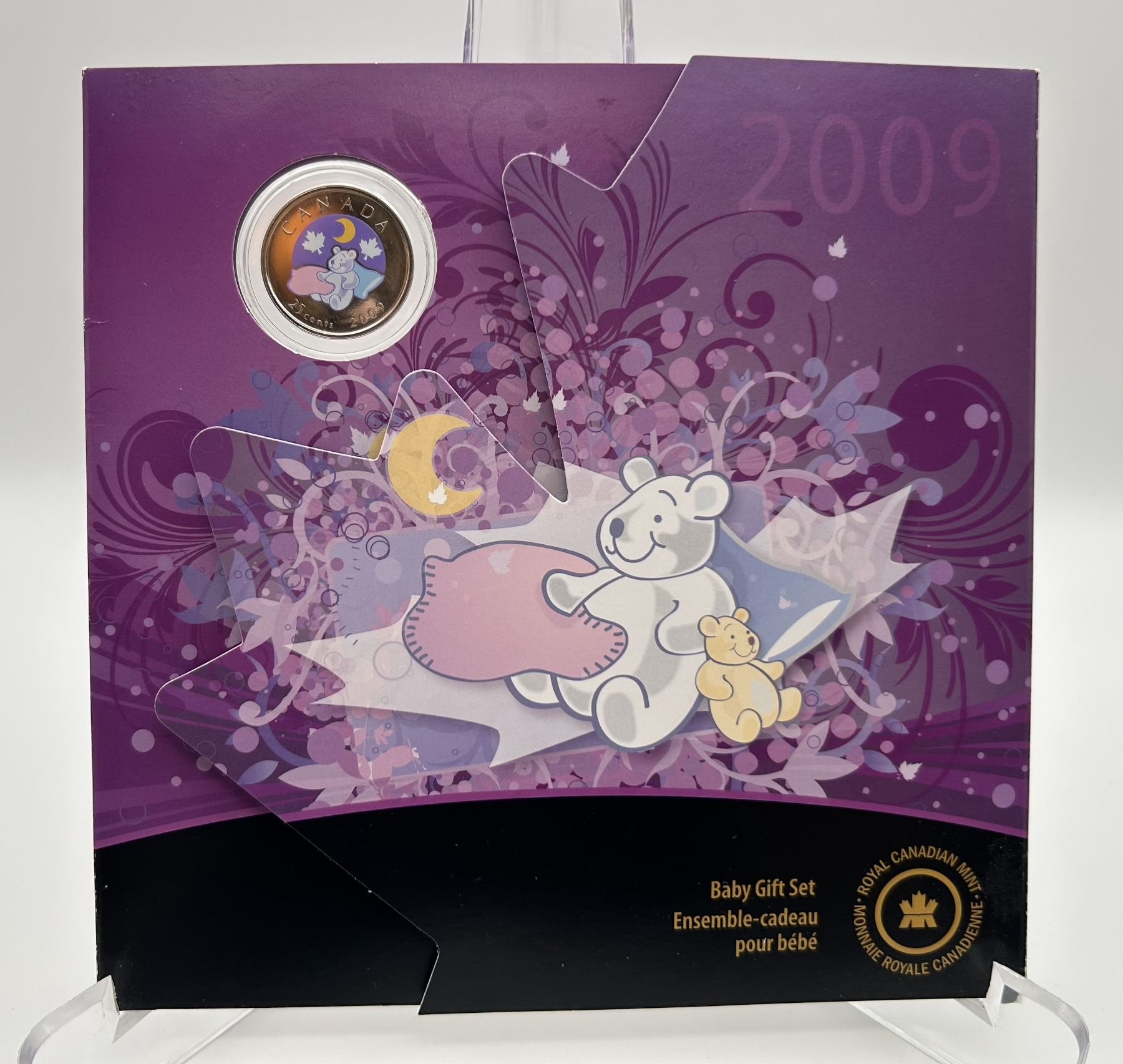 2009 Baby Gift Set Royal CANADIAN Mint 7 Coin Set with Coloured Quarter. Outer plastic packaging torn.