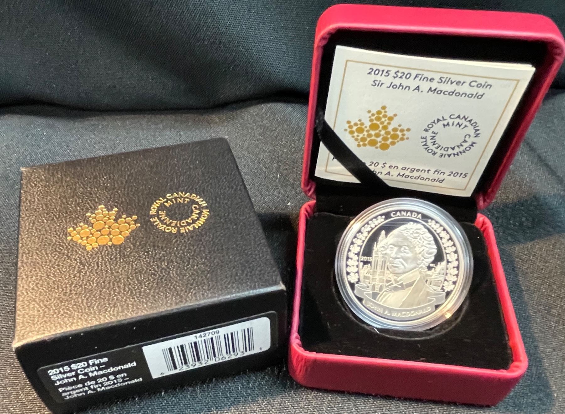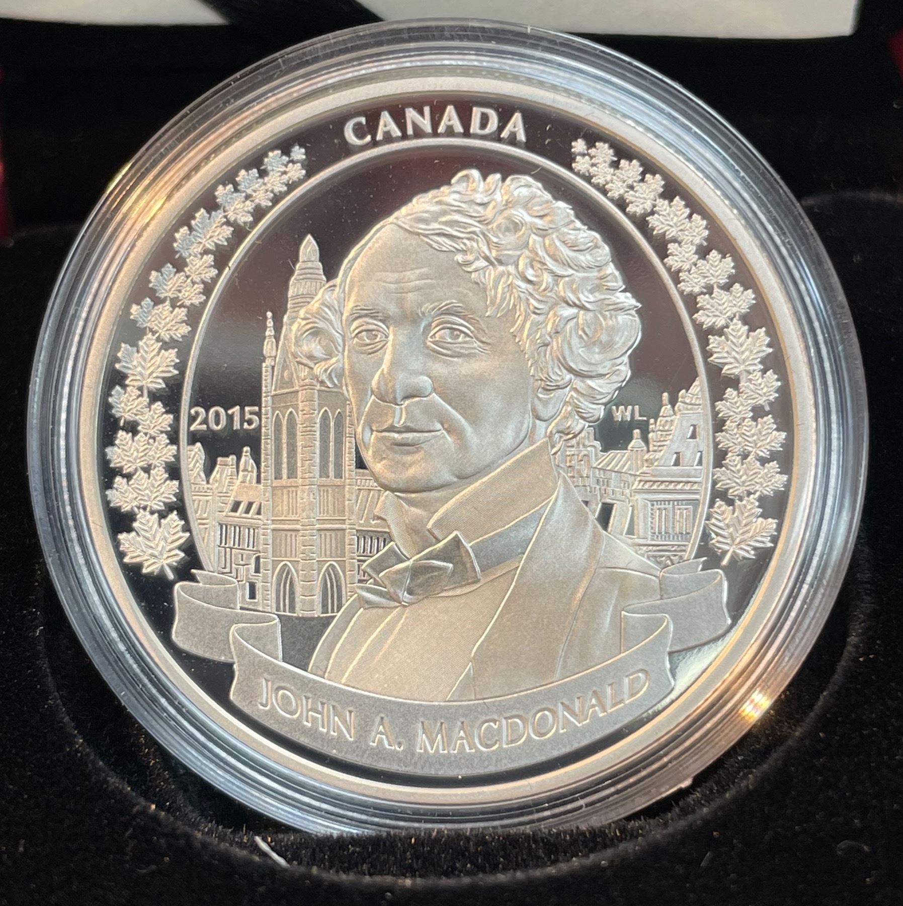 A proof-quality coin celebrating Sir John A. Macdonald, one of Canada's most important architects of Confederation. Fine Silver - Mintage: 8,500 - With Box, sleeve, and COA - RCM 142709