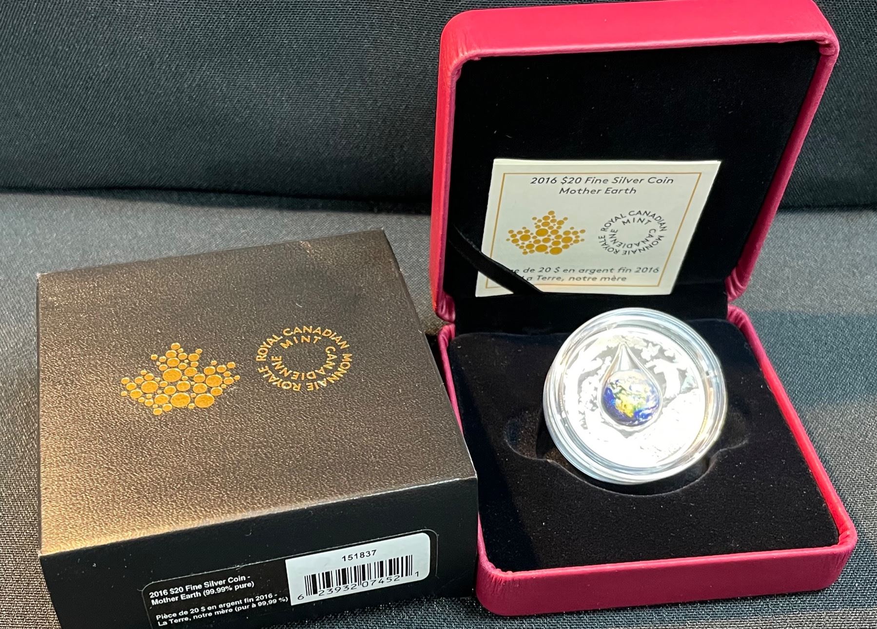 FIRST-EVER coin for the Royal Canadian Mint with a unique 3D dome effect in the shape of a water droplet! Fine Silver - Mintage: 7,000 - With Box, sleeve, and COA - RCM 151837