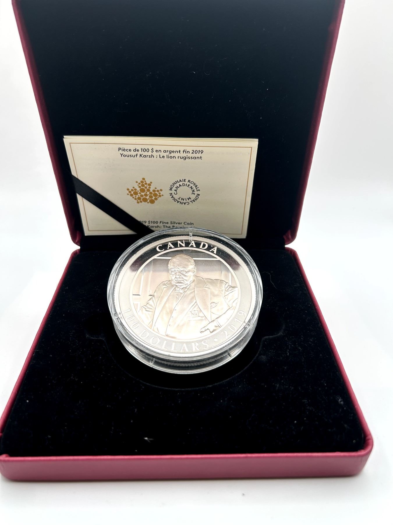10 oz. Pure Silver Coin - Winston Churchill: The Roaring Lion. Mintage: 700. Item #174590. "Yousuf Karsh’s iconic portrait of Churchill is one of the most famous photographs in history!"