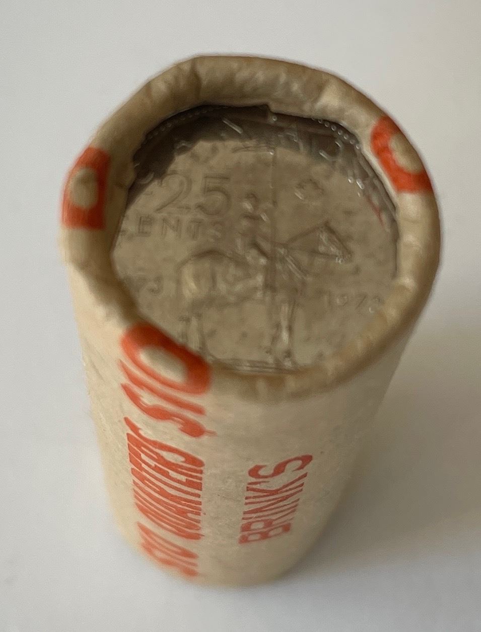 Unsearched and Original Canada 1973 Uncirculated Bank Roll of Quarters $10 Face Value - Unopened.