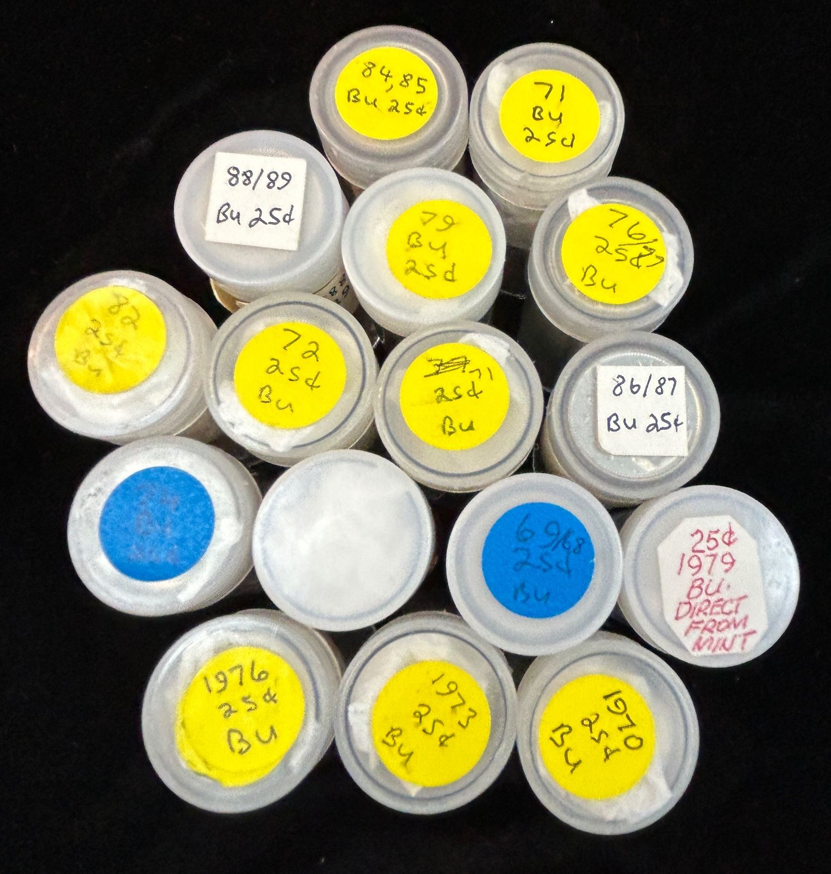 Rolls from the 60's, 70's & 80's. 1969, 1970, 1971, 1972, 1973, 1974, 1976, 1979, 1982, 1984, 1986, 1987, 1988, 1989. (16 roll lot)