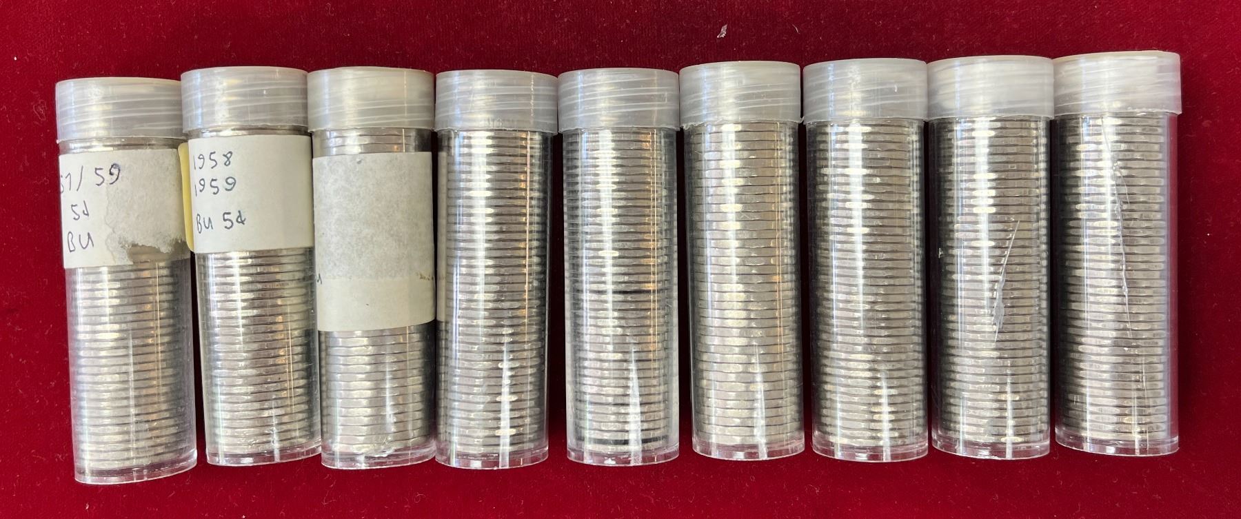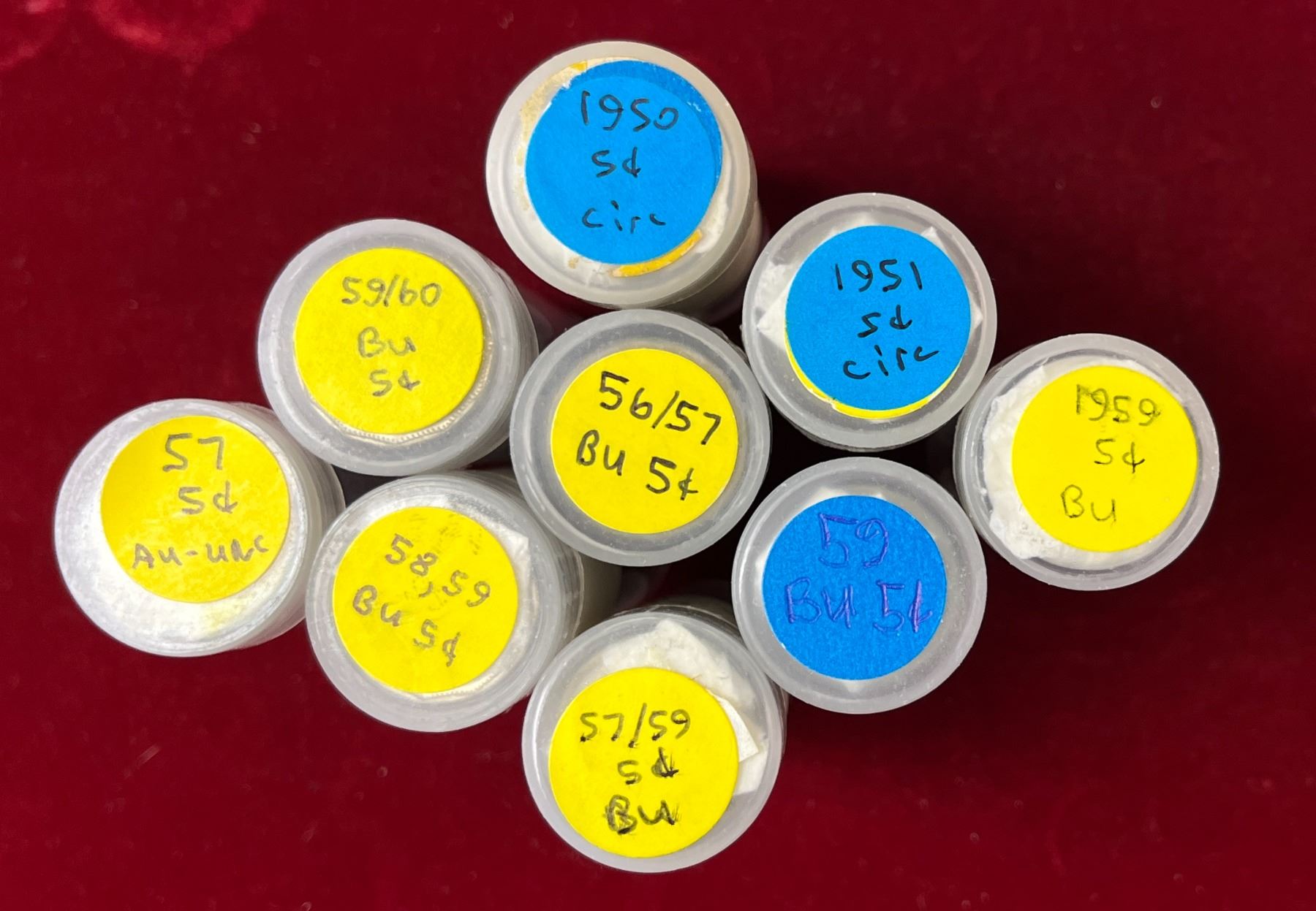 Rolls from the 50's. 1x 1950 (circ), 1x 1951 (Circ). The following rolls are marked as BU 1x 1956/1957, 1x 1957, 1x 1957/1959, 1x 1958/1959, 2x 1959, 1x 1959/1960 (9 roll lot)
