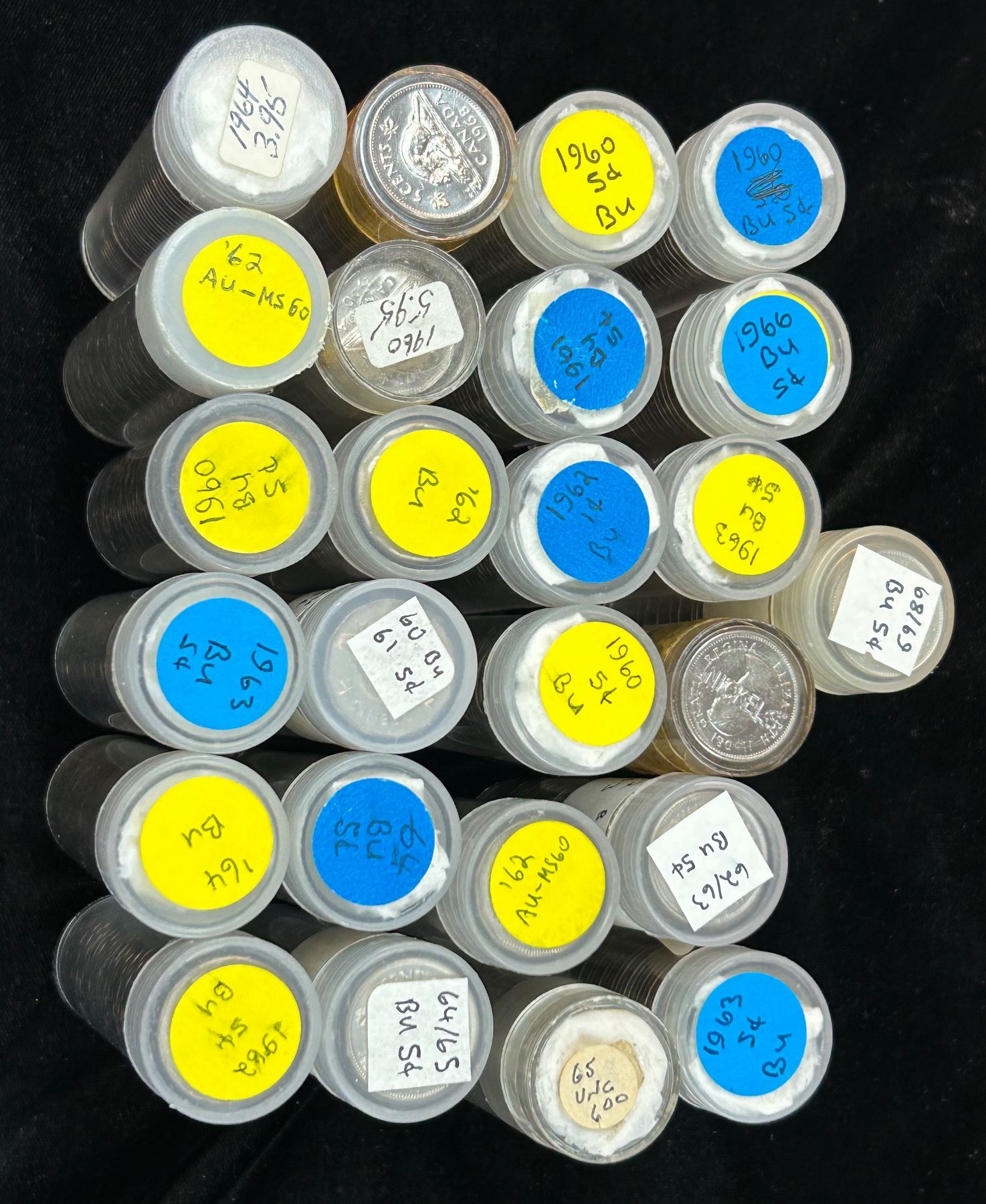 Rolls from the 60's. 6x 1960, 1x 1961, 5x 1962, 1x 1962/1963, 3x 1963, 4x 1964, 1x 1964/1965, 1x 1965, 1x 1966, 1x 1968, 1x 1968*1969. (25 roll lot)