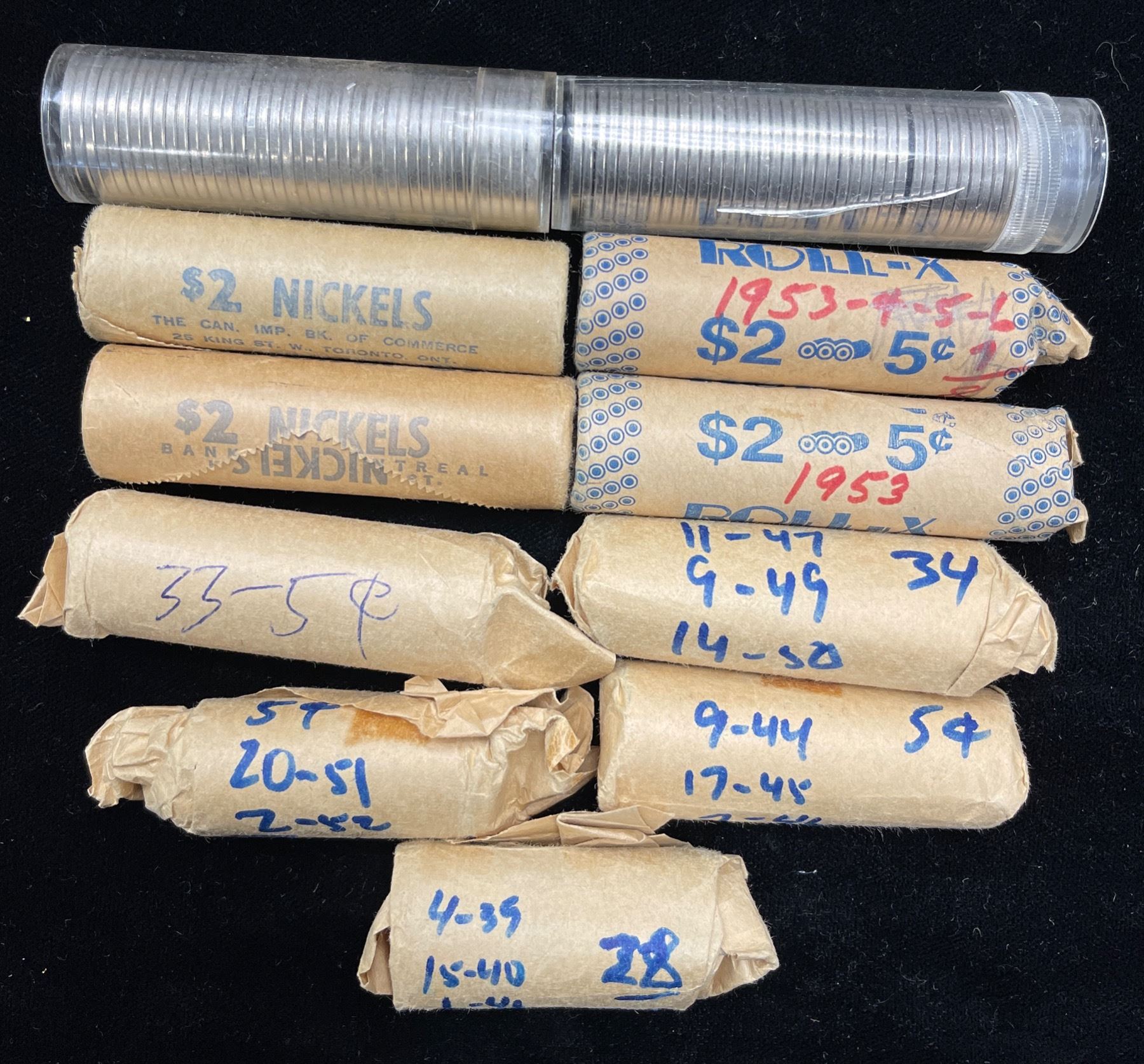 A mixed UNSEARCHED lot of Canada 5 cent. Dates on wrappers include, 1967, 1968, 1970, 1953, 1940-1942 and many more. (11)