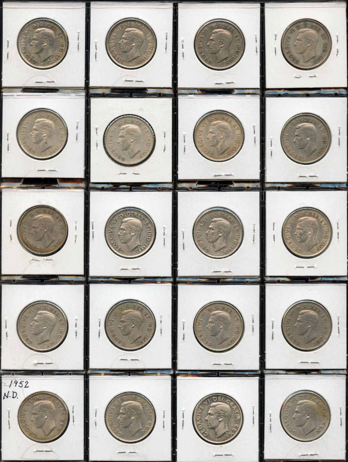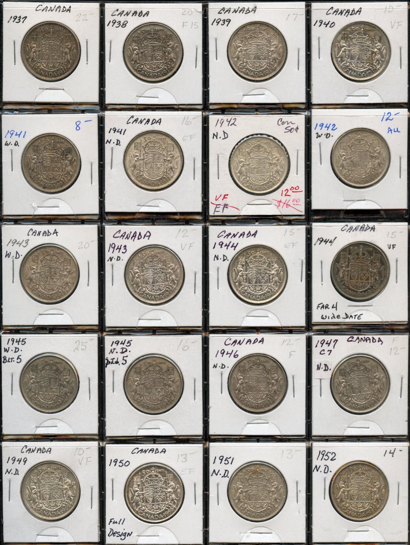 Dates range from 1937 to 1952. Conditions are F-EF. 20 pcs.