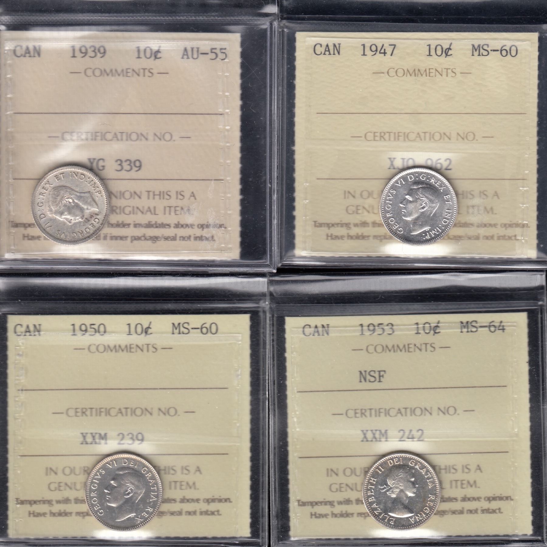 Includes: 1939 AU-55, 1947 MS-60, 1950 MS-60, 1953 NSF MS-64. 4 Pcs.