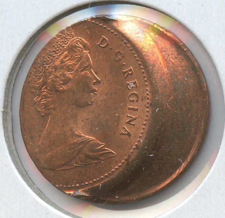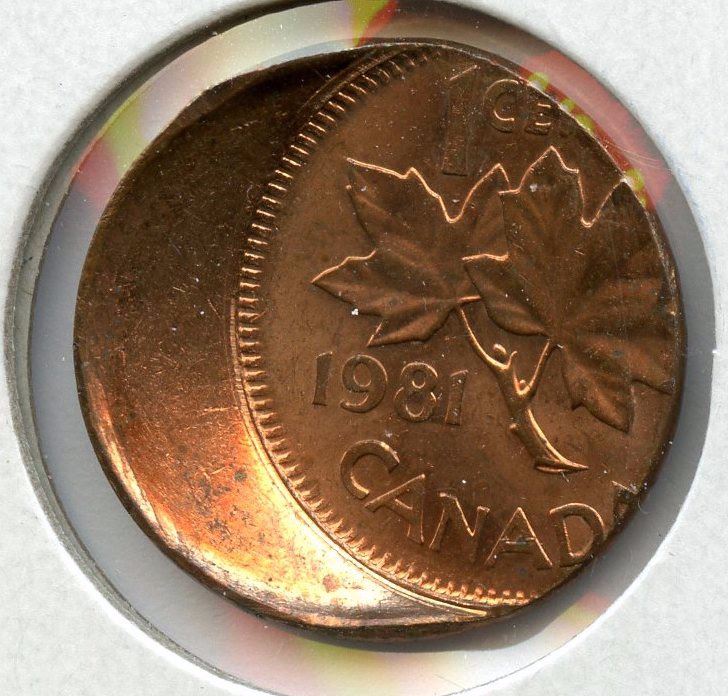 1981 1c struck 22% off-centre, bright BU red problem-free error