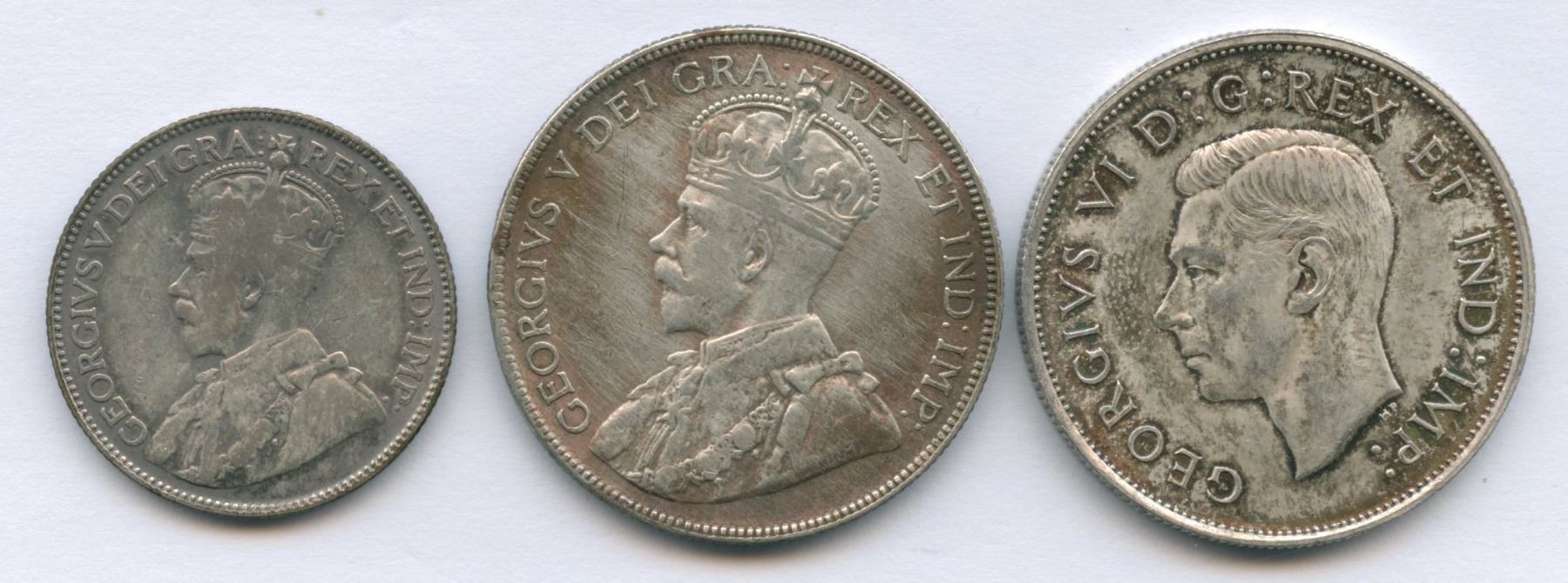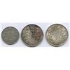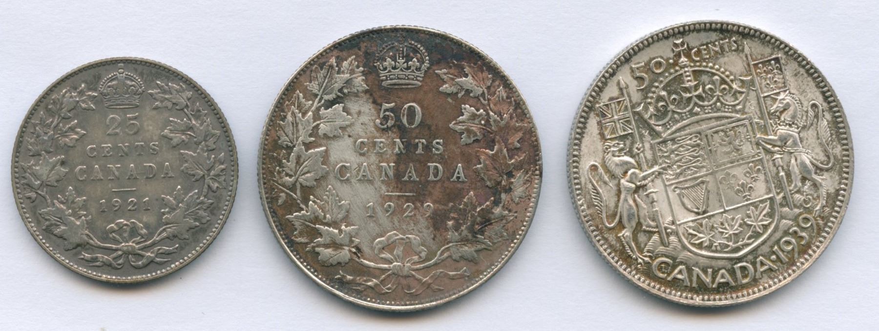 1921 Twenty-Five Cents, Fine. 1929 Fifty Cents, Fine. 1939 Fifty Cents, AU. 3 pcs.