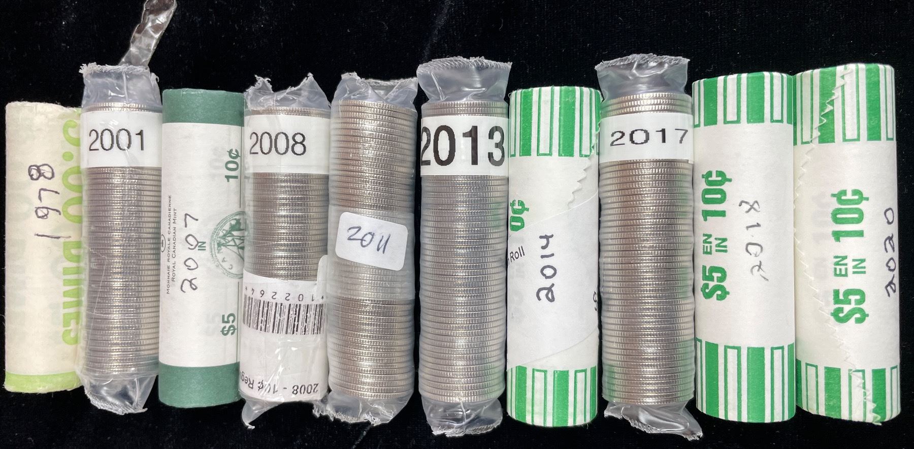Sealed rolls include 1978,2001,2007,2008,2011,2013,2014,2017,2018,2020 (10)