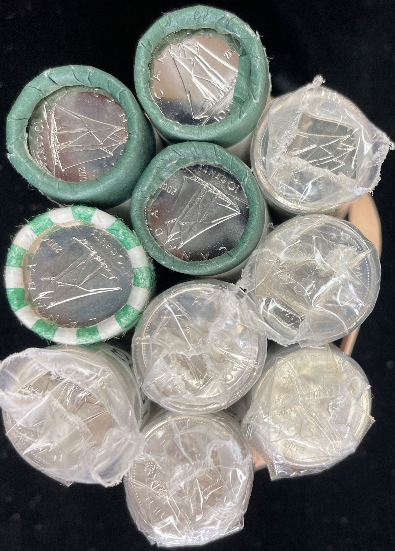 Sealed rolls include 1993,2000,2001,2002,2003,2004,2005,2006-logo,2007,2009 (10)