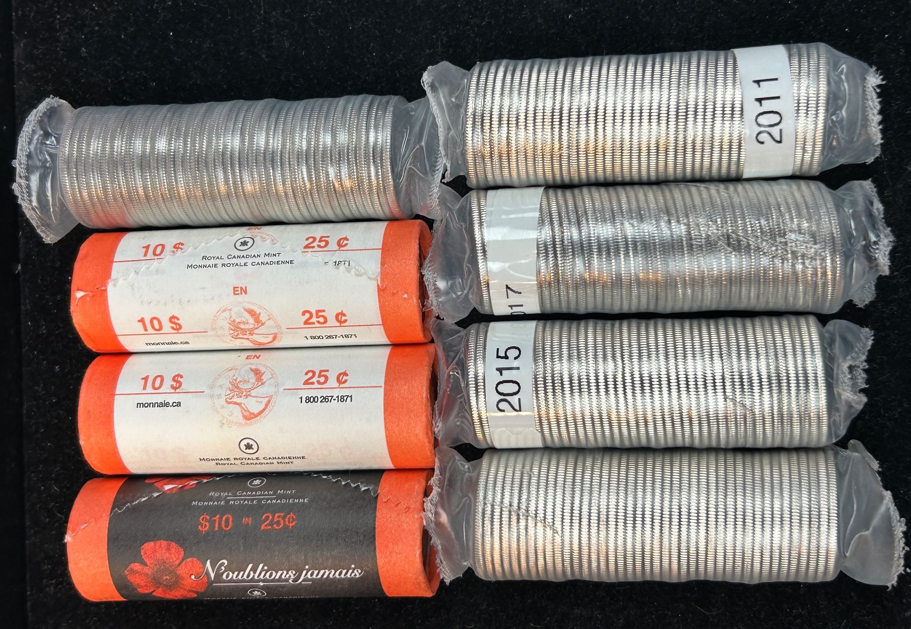 Sealed rolls included, 1x 2004 Lest We Forget, 2x 2007 Downhill, 1x 2008 Snowboard, 1x 2009 Men's hockey, 1x 2015 Poppy, 1x 2017, 1x 2011 Bison.