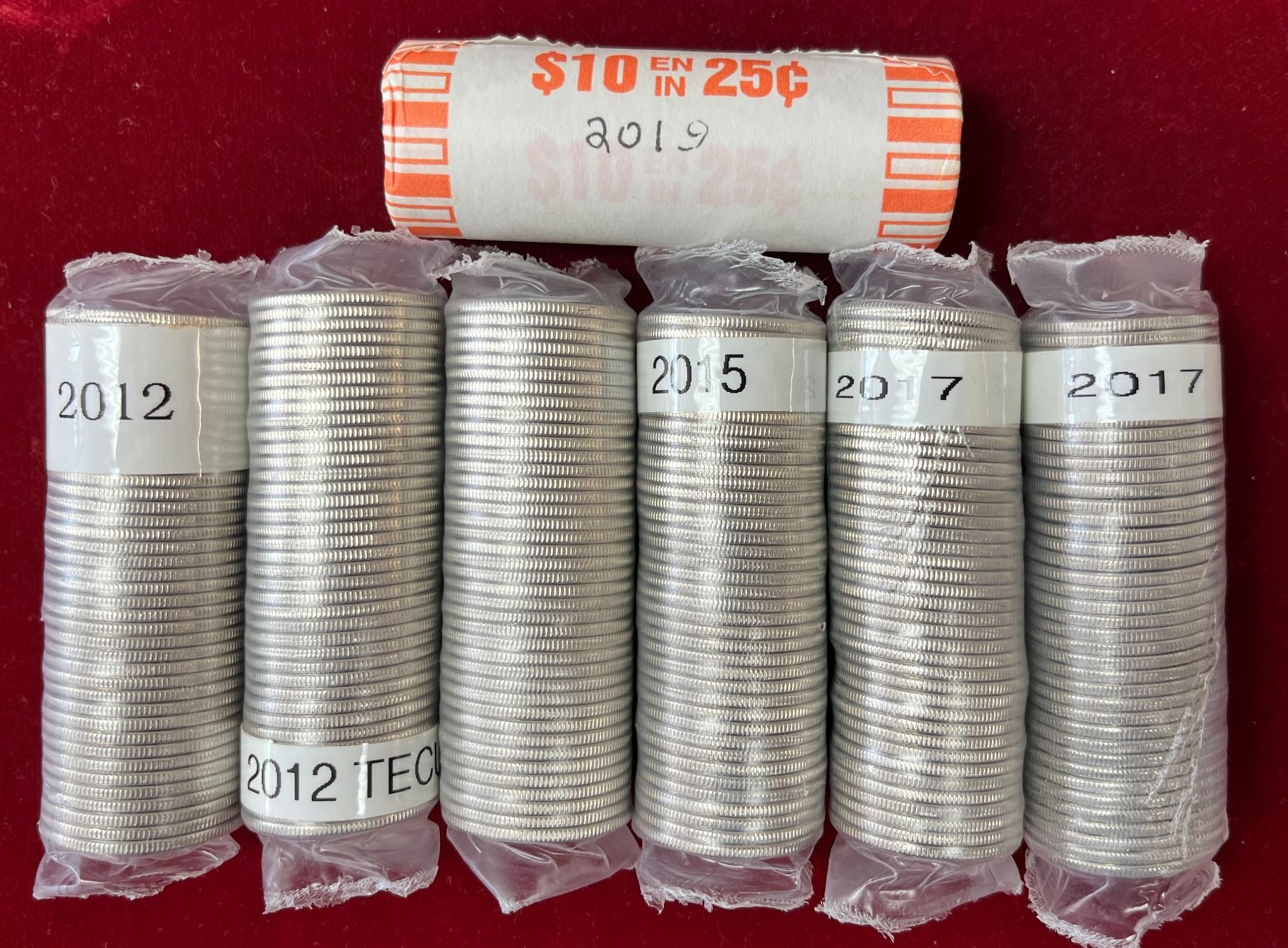 Sealed rolls included, 1x 2009 Men's hockey, 1x 2012 Tecumseh, 1x 2012, 1x 2015 Poppy, 2x 2017, 1x 2019.