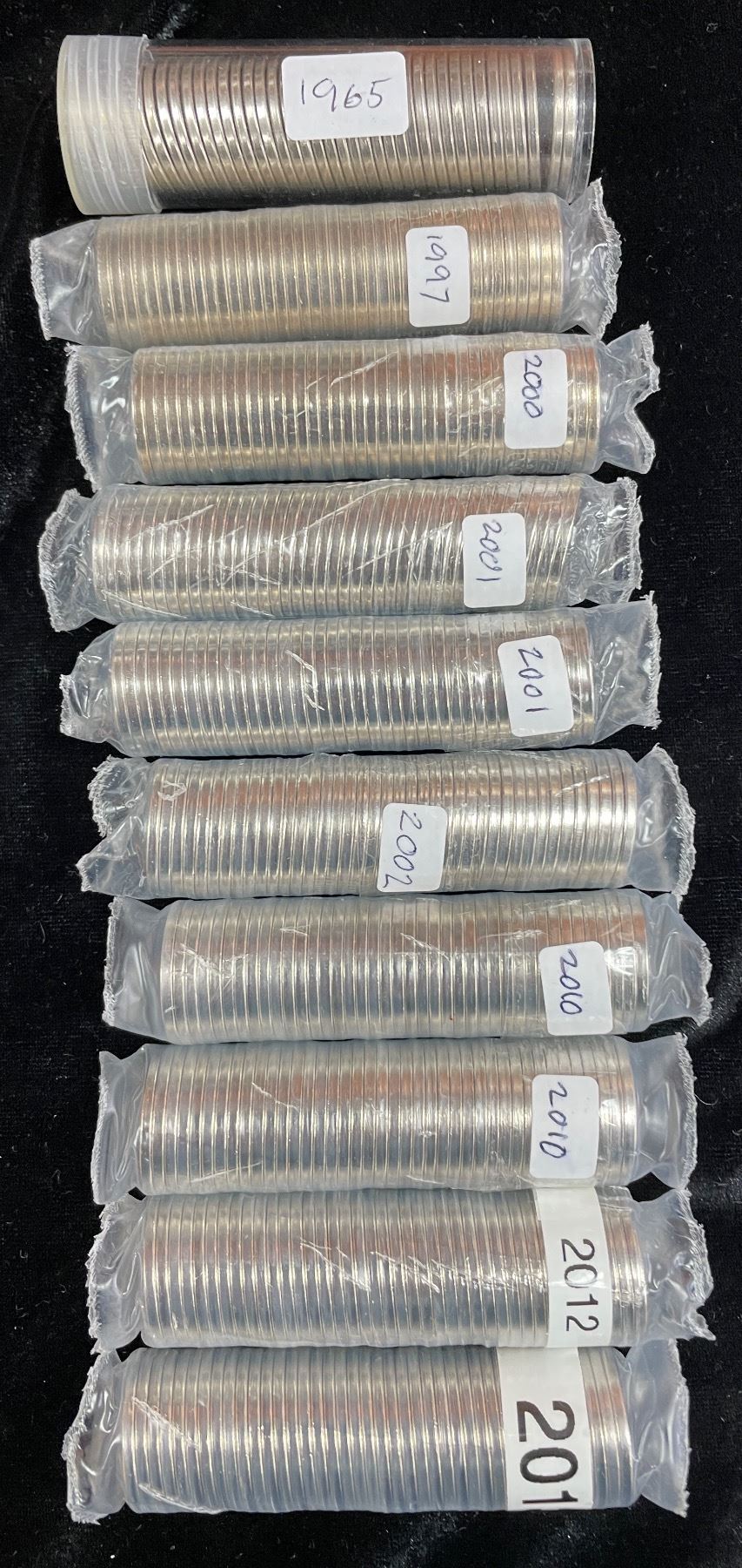 Sealed rolls include 1965,1997,2000,2001,2001-P,2002-P,2010 Logo,2010,2012 Logo,2013 Logo (10)