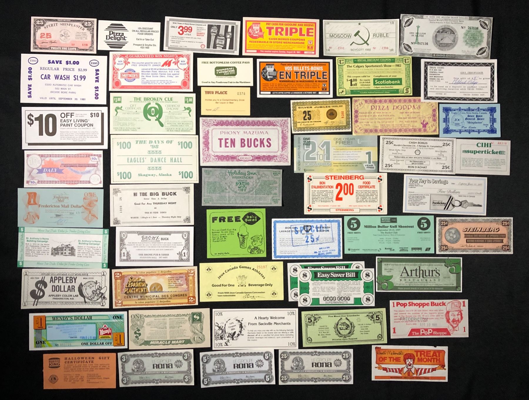 50 specimens representing grocery, store, service stations, restaurants, etc. coupons. Many Maritime firms represented.