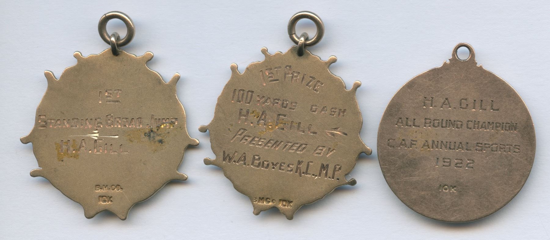 Three medals 1922-1925. Two of these were issued at Camp Borden for track and field, the third for best all round athlete. All are 10k with a total of 34.5 grams. 3 pcs.