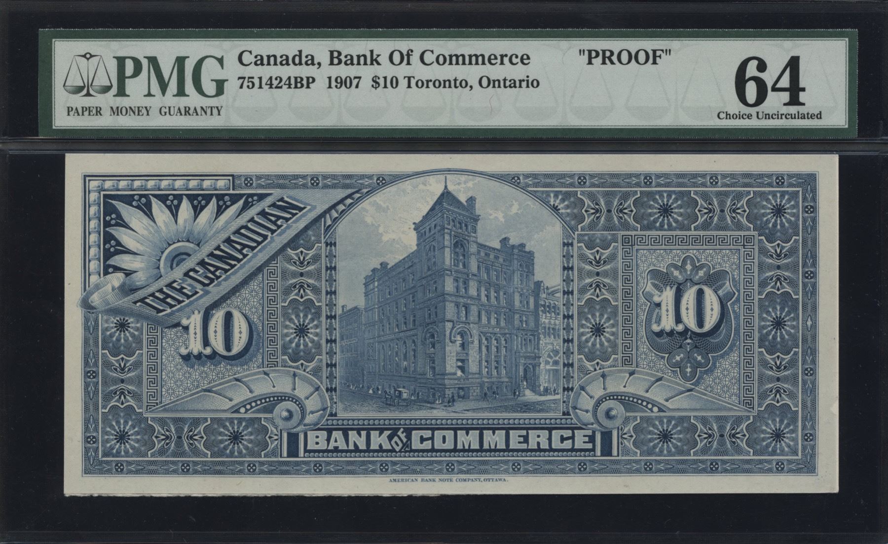 Canadian Bank of Commerce $10, 1907 Coloured Back Proof