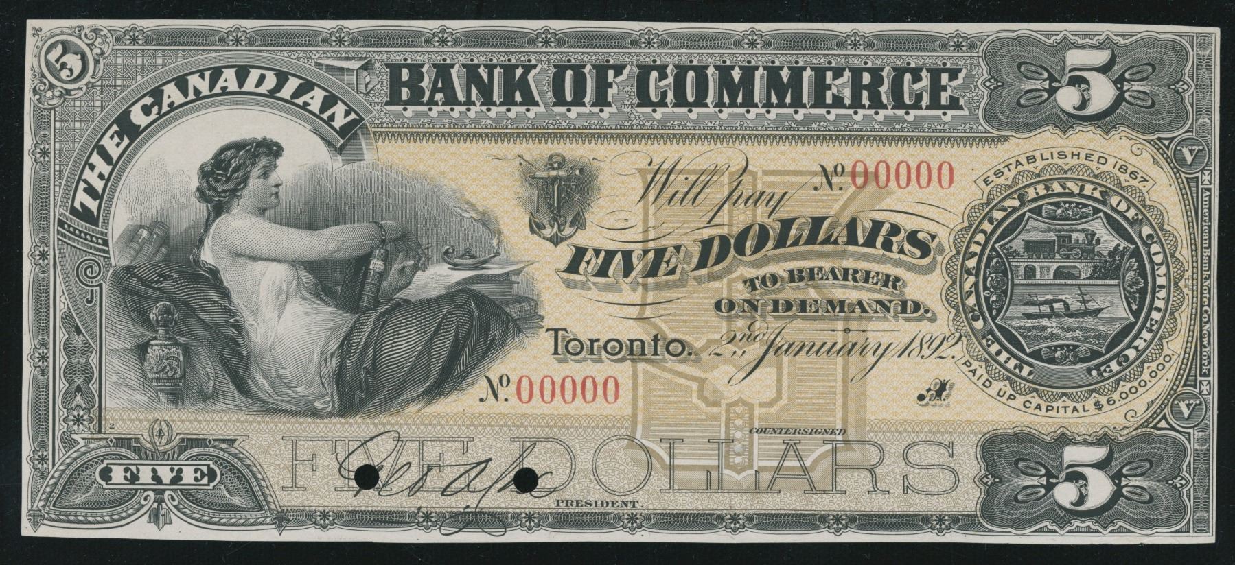 Canadian Bank of Commerce $5, 1892 - Coloured Face Proof