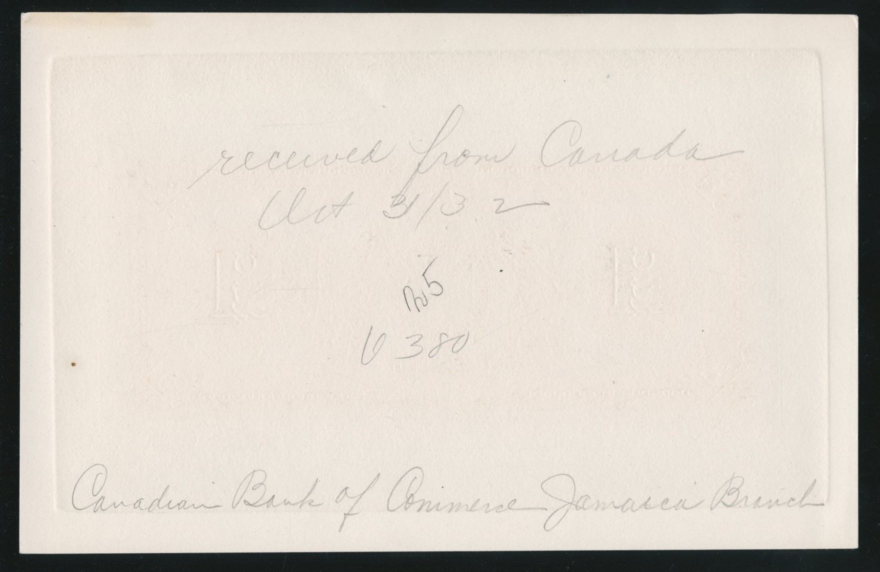 CH 75-24-02Pa. Unc's. At the time, British and Canadian banks were authorized to issue banknotes in denominations of £1 and higher, while the Government of Jamaica issued the lower denominations. A seldom seen gem front and back pair. 2 pcs.