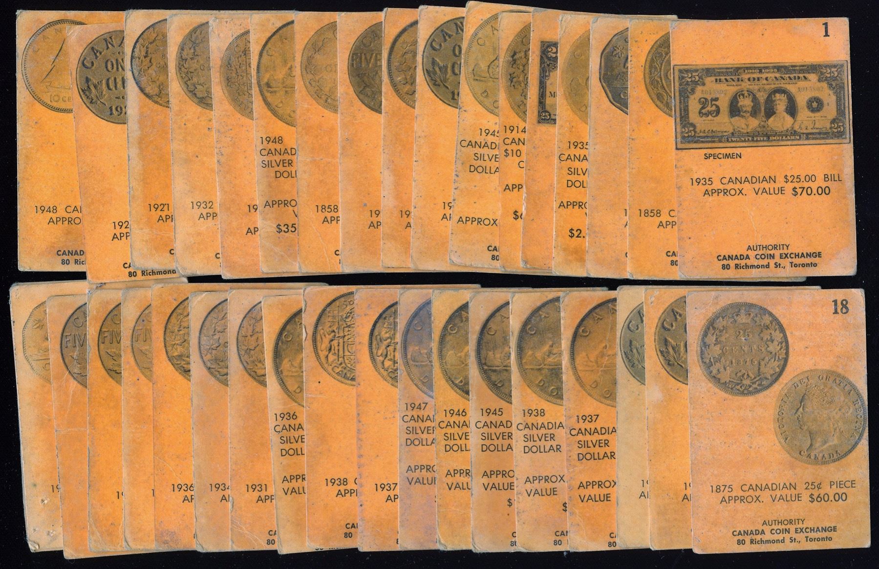 Card #'s 1 thru 41. Conditions vary but rarely seen. This is the first lot that we've handled. Produced under authority of Canada Coin Exchange, Toronto. 41 Pcs.